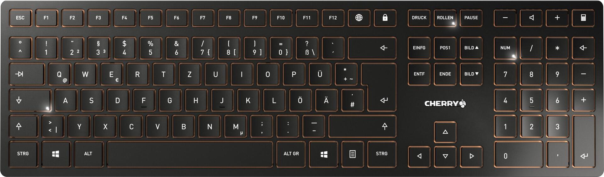 CHERRY DW 9100 SLIM - Tastatur-und-Maus-Set - kabellos - 2,4 GHz, Bluetooth 4,2 - QWERTZ - Deutsch - schwarz/bronze (JD-9100DE-2)