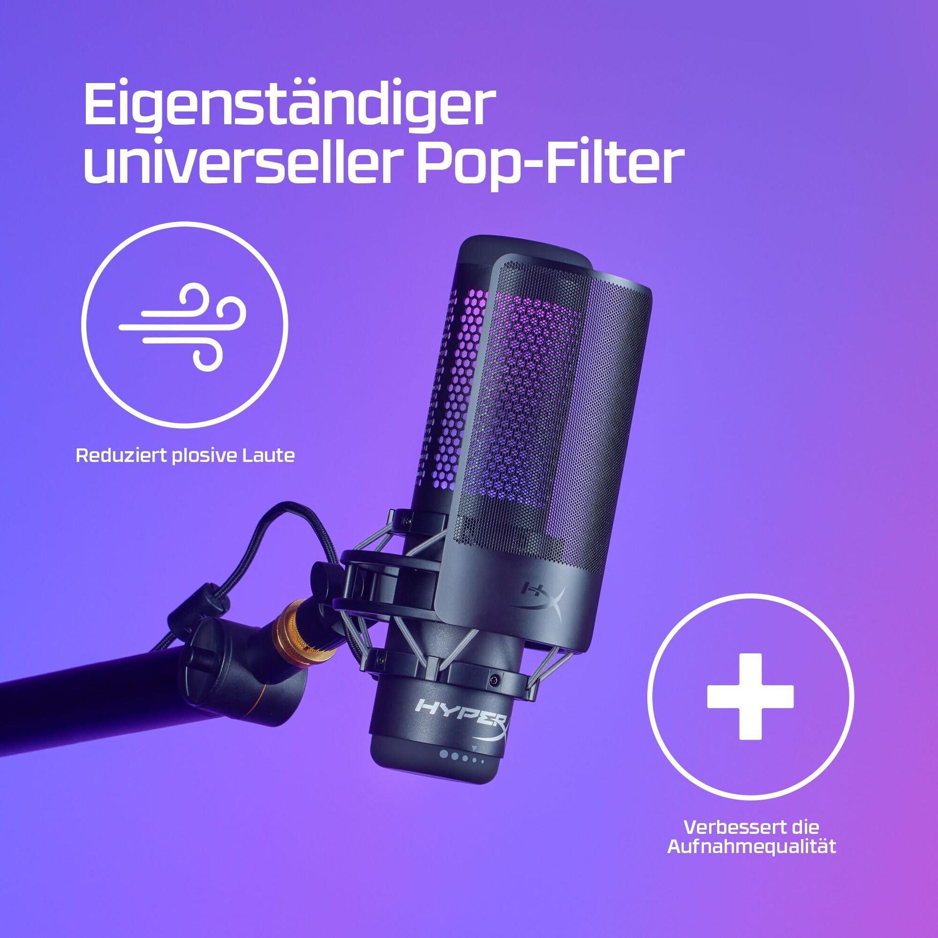 Streamer, Content Creator und angehende Synchronsprecher profitieren mit dem HyperX Shield Mikrofon-Popschutz von saubereren Aufnahmen. Dieses nützliche Mikrofonzubehör kann die plötzlichen Luftstöße herausfiltern, die bei P-Lauten entstehen. Es ist mit einer Universalklemme und einem flexiblen Schwanenhals aus Silikon ausgestattet, die sich mühelos an den meisten Mikrofonsystemen anbringen lassen. Und für die Anwender von HyperX QuadCast, QuadCast S und ProCast ist es noch einfacher: Nimm einfach den Schwanenhals ab und bringe den Filter direkt an der Mikrofonspinne an.