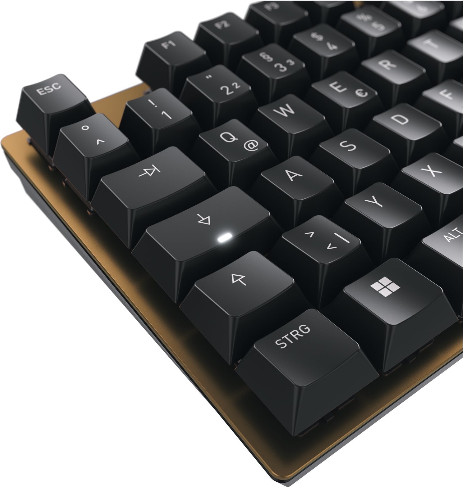 Minimalistisches mechanisches Keyboard mit eloxierter Aluminium-Oberfläche.