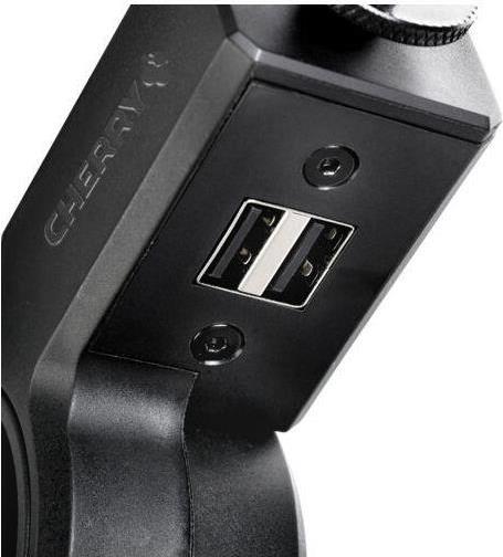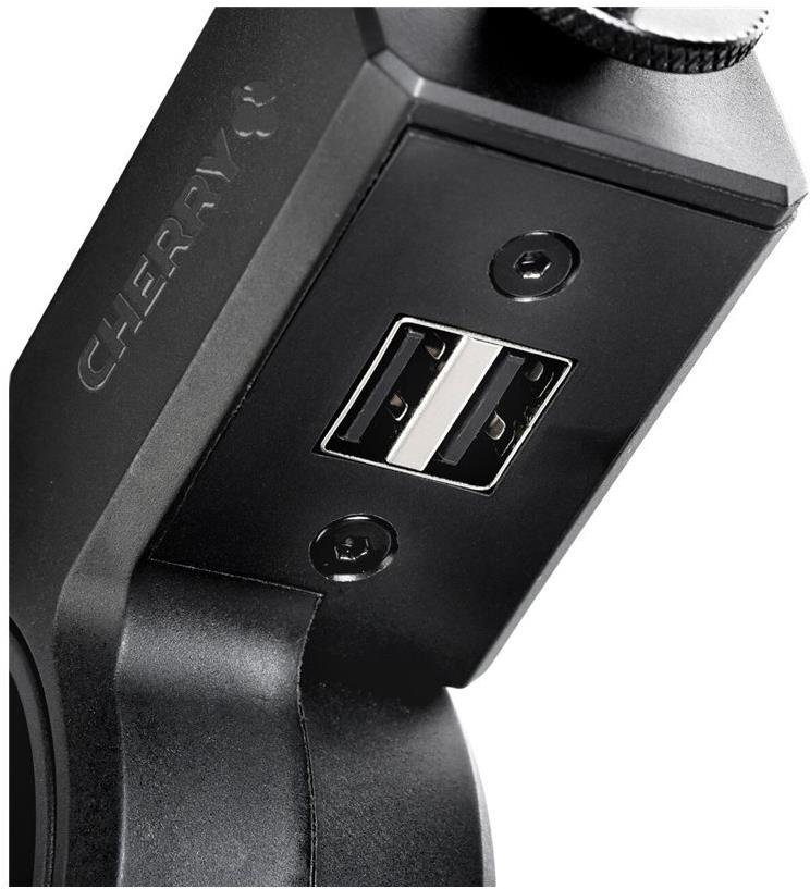 Cherry MA 6.0 UNI USB HUB Mikrofonarm für alle UM Mikrofone Aluminium in Schwarz mit Tischklemme (max. 60 mm), USB-Hub mit zwei Anschlüssen (5V/2A), frei einstellbare Winkel, integriertes 2.5m langes USB-Kabel, 3/8“ Gewindeanschluss mit beiliegendem 3/8“ auf 5/8“ Adapter, max. 800g, inkl. USB-A auf USB-B, Mini-USB (JA-0850)