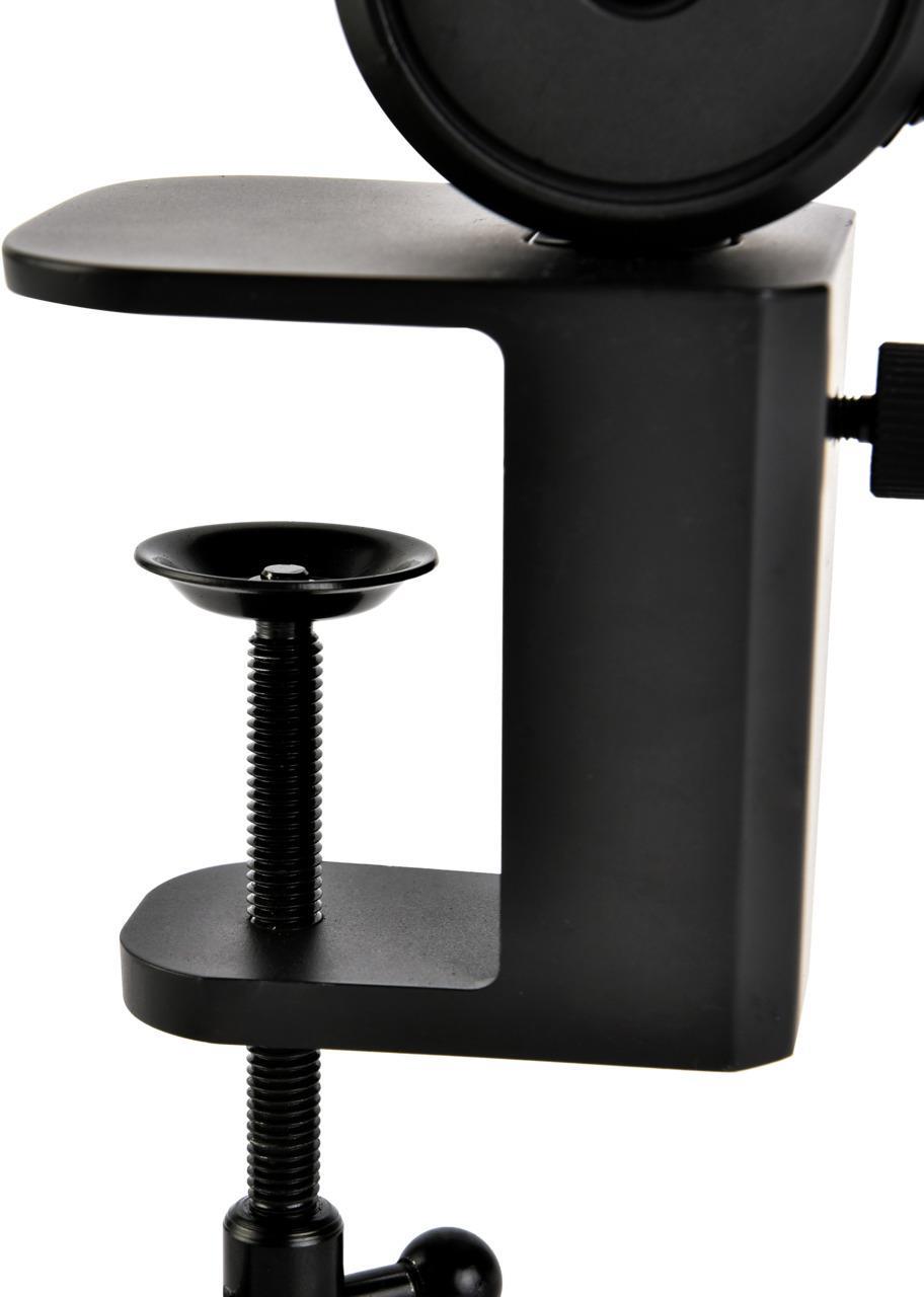 Sobald du nicht nur einfach einen Text ins Mikrofon einsprichst, sondern währenddessen aktiv Maus und/oder Tastatur bedienen möchtest, verschafft dir ein Mikrofonarm den notwendigen Platz. Daher empfiehlt sich der CHERRY MA 6.0 UNI USB vor allem bei Livestreams, Gaming-Videos oder Videokonferenzen. Er besteht komplett aus Aluminium und lässt sich bequem über eine Tischklemme befestigen. Mithilfe der Gelenke lässt sich der Mikrofonhalter einfach einstellen und das Mikro optimal positionieren.