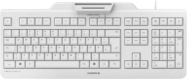 CHERRY SECURE BOARD 1.0 - Tastatur - mit NFC, Smart Card reader (CCID) - USB - Deutschland - Schlüsselschalter: CHERRY LPK - Weiß/Grau (JK-A0400DE-0)