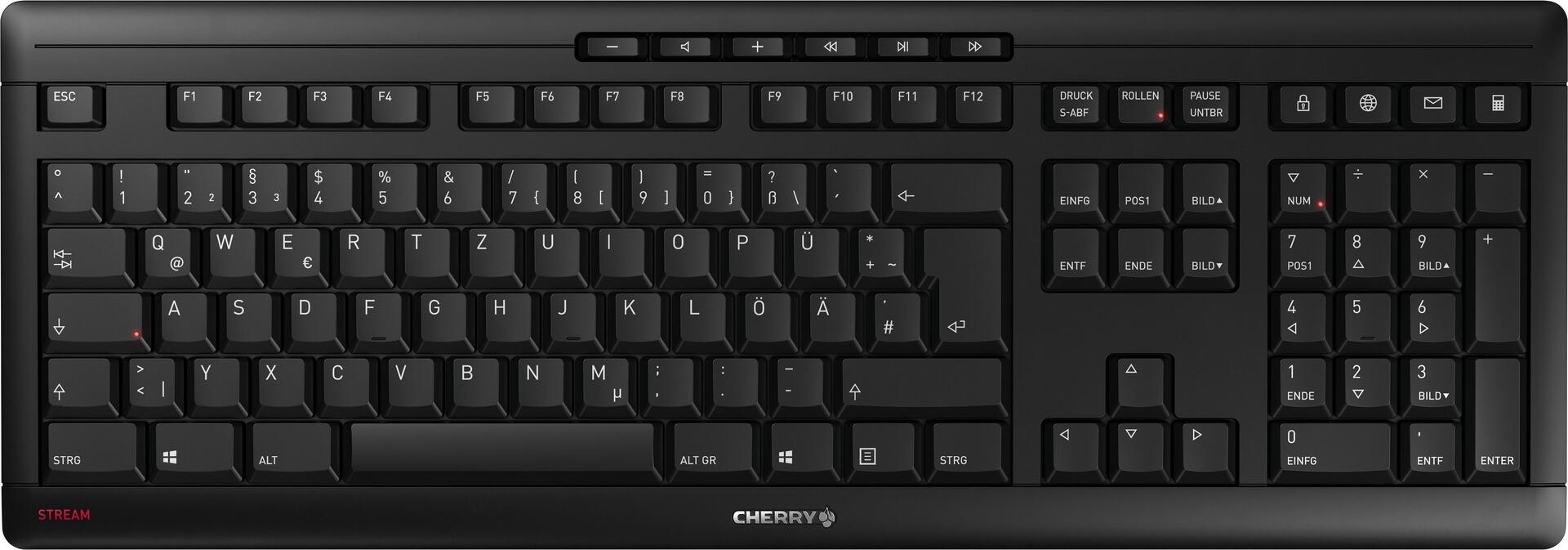 Sie wollen auf Nummer sicher gehen? Ein Desktop-Set, das lange hält, super aussieht und Freude macht beim Tippen und Klicken? Hier ist es. Beim CHERRY STREAM DESKTOP wissen Sie, was Sie bekommen. Es ist neu und bewährt - gleichzeitig. Das CHERRY STREAM KEYBOARD wurde über viele Produktgenerationen zu absoluter Perfektion geführt. Die überarbeitete STREAM ist die atemberaubende STREAM - die es nun auch als kabellose Variante mit einem passenden Partner gibt, der auf Augenhöhe spielt: die STREAM Mouse.Produkttext[/head]Das STREAM DESKTOP RECHARGE ist die Premium-Version des erfolgreichen STREAM DESKTOPs. Das Design des kabellosen Sets scheint zum Verwechseln ähnlich zu sein und doch lohnt sich ein genauerer Blick: Neue Features sind z. B. die wiederaufladbaren und austauschbaren Akkus. Ebenfalls neu ist, dass nun auch die Funkmaus über eine AES-Verschlüsselung verfügt – nicht nur die Tastatur.Die hauseigene SX Scherentechnologie bildet beim STREAM DESKTOP RECHARGE das Herzstück. Durch den präzisen Tastenanschlag der leisen PC Tastatur entsteht das unverkennbare CHERRY-Schreibgefühl. Dies legt den Grundstein für einen produktiven Arbeitstag mit geringer Geräuschkulisse.Ausgezeichnet dazu passt die 6-Tasten-Maus, ebenfalls mit flüsterleisen Tasten. Die Größe und Form ist für große und kleine Hände gleichermaßen geeignet. Die Auflösung und damit auch die Geschwindigkeit ist über einen DPI-Schalter 3-stufig regelbar. Auch in punkto Bedienkomfort liegen Sie mit dem STREAM DESKTOP RECHARGE richtig. Die Computer Maus und -Tastatur sind wiederaufladbar - auch während Sie ganz entspannt weiterarbeiten. Das USB-C Kabel und die hochwertigen GP ReCyko+ Akkus gehören zum Lieferumfang. Anders als bei den meisten Tastatur-Maus-Sets am Markt, sind in diesem Desktop keine festverbauten Lithium-Zellen. Die hier verwendeten NiMH-Akkus können Sie bei Bedarf einfach wechseln. Sind wir uns mal ehrlich: In der Regel hält eine CHERRY Tastatur länger als jeder Akku.Wenn Sie mit sensiblen Daten arbeiten, ist Verschlüsselung ein wichtiger Aspekt. Dieses Set ist mit AES-128 (Advanced Encryption Standard) ausgestattet. Dank der 128-bit CCM Encryption werden die Tastenanschläge und Mausbewegungen verschlüsselt bevor sie übertragen werden. Praktisch sind auch die in die Tasten integrierten Status LEDs. Mit der optional verwendbaren CHERRY KEYS Software erreichen Sie ein Maximum an Flexibilität. Mit Hilfe dieser Anwendung konfigurieren Sie Ihre Tastatur und Maus entsprechend Ihrer individuellen Wünsche. Der Download auf www.cherry. de/keys ist kostenlos. Wie bei allen Mitgliedern der STREAM Familie verleiht auch beim STREAM DESKTOP RECHARGE eine Metallplatte maximale Stabilität. Die Tastatur hat eine hohe Reichweite und verfügt zusätzlich auf der Rückseite über acht Gummipads und gummierte Aufstellfüße. Die Maus steht dem in nichts nach. Sie liegt stabil und sicher in Ihrer Hand und gleitet dennoch mühelos über den Tisch.Das Desktopset trägt das GS-Siegel \"\"Geprüfte Sicherheit\"\". Es bescheinigt die Einhaltung aller relevanten europäischen Richtlinien und Verordnungen zum Thema Sicherheit und Ergonomie. Mit der Auszeichnung \"\"blauer Engel\"\" setzt das Desktopset eine Orientierung beim nachhaltigen und verantwortungsbewussten Einkauf.Die neue drahtlose Desktopset von CHERRY vereint alle geschätzten Eigenschaften des millionenfach verkauften STREAM KEYBOARD und erweitert diese um Wireless Technologie und ein Ladekonzept. Suchen Sie nach einem soliden, belastbaren und beständigen Begleiter für den professionellen oder privaten Einsatz? Dann ist das STREAM DESKTOP RECHARGE Ihre erste Wahl[head]Hauptmerkmale