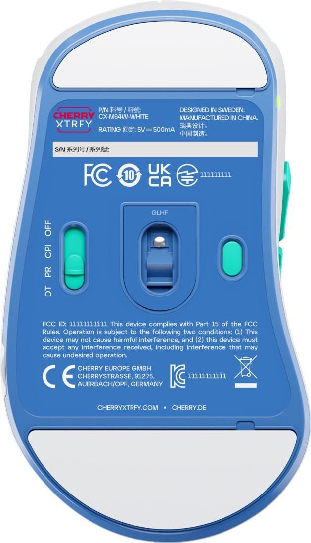 CHERRY Xtrfy M64 - Maus - ergonomisch - 5 Tasten - kabellos - 2.4 GHz - kabelloser Empfänger (USB) - Schwarz (CX-M64W-WHITE)