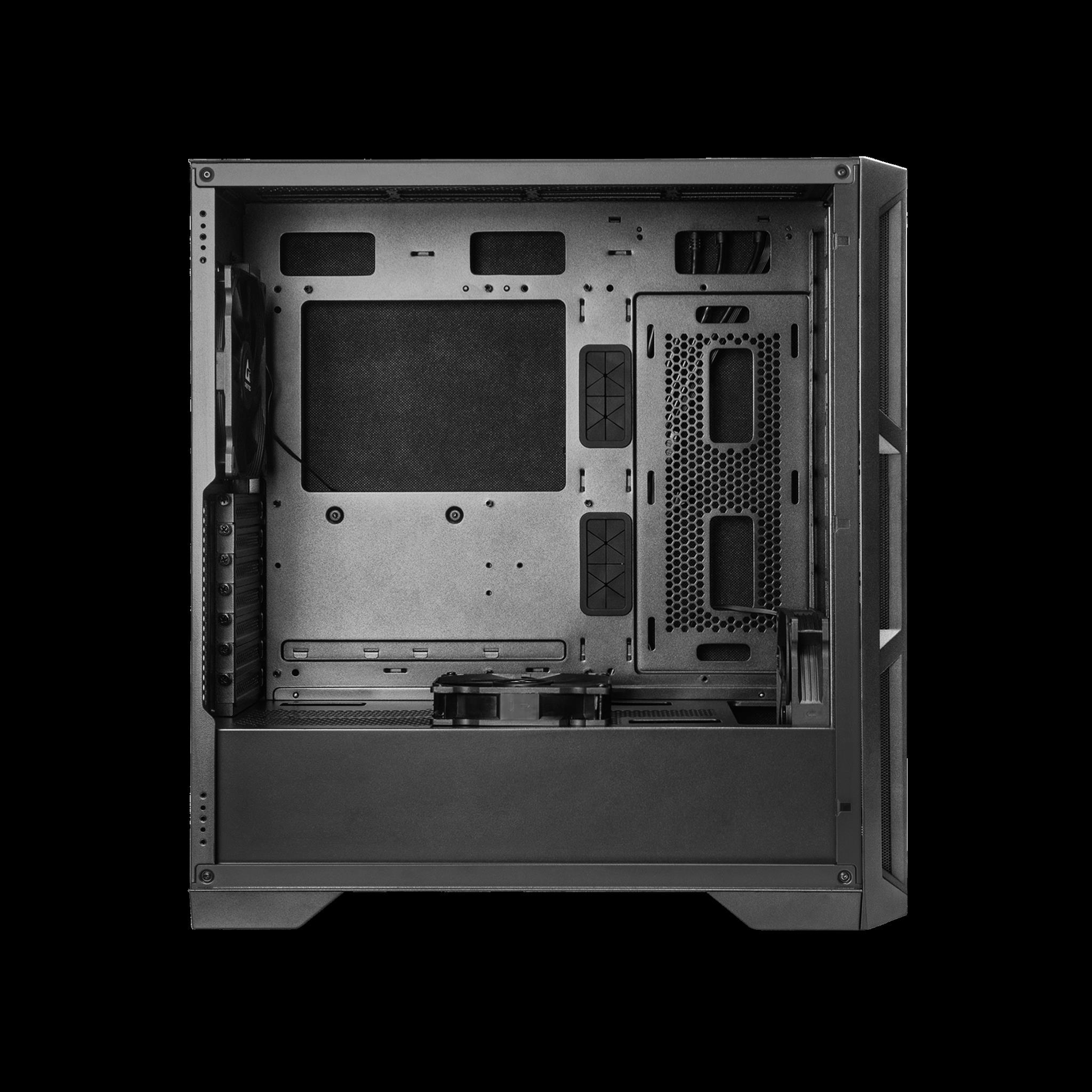 | Kühlsystem | Vorderseite: 140 mm Lüfter x 1 / 3 x 120/140 mm Lüfter oder 240/280/360/420 mm Kühler unterstützt, unterstützt Pulsweitenmodulation (PWM) Rückseite: 140 mm Lüfter x 1 / 1 x 120 mm Lüfter werden unterstützt, Unterstützung von Pulsweitenmodulation (PWM) Oberseite: 120 mm Lüfterhalterung x 3 / 2 x 140 mm Lüfter oder 240/280/360 mm Kühler unterstützt PSU-Ummantelung: 120 mm Lüfter x 1 / 2 x 120 mm unterstützt, unterstützt Pulsweitenmodulation (PWM) Seite: 120 mm Lüfterhalterung x 2 |