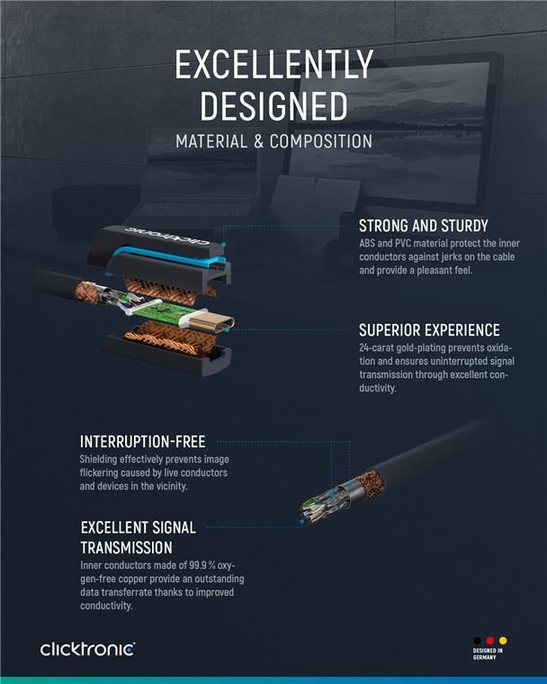 Clicktronic Casual USB-C™/HDMI™ Adapterkabel, 1 m - Hochgeschwindigkeits-Adapter von USB-C™/ HDMI™ (44928)