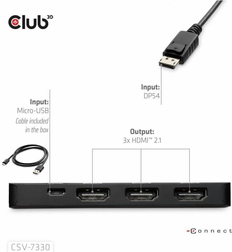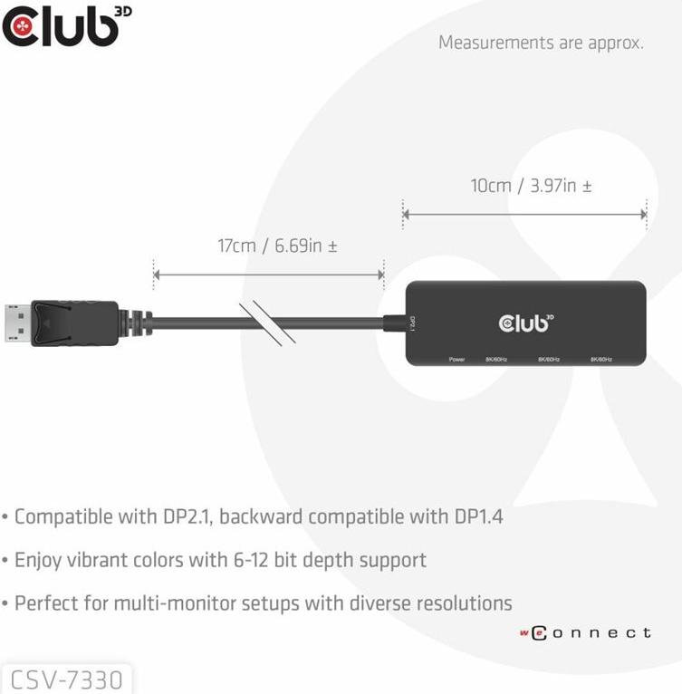Der Club 3D CSV-7330 Videoadapter verbessert Ihr visuelles Erlebnis mit einer maximalen Ausgangsauflösung von 8K bei einer Bildwiederholfrequenz von 60 Hz. Dieser Adapter verbindet DisplayPort-Geräte mit HDMI und verfügt über einen zusätzlichen Stromanschluss über einen Micro-USB-Typ-B-Anschluss. Mit Multi-Monitor-Unterstützung und umfangreichen Farbtiefenoptionen, darunter YCbCr 4:4:4, YCbCr 4:2:2 und YCbCr 4:2:0, gewährleistet dieser Adapter eine lebendige und präzise Farbwiedergabe für jede Konfiguration. Er entspricht verschiedenen Standards wie HDMI 2.1 und HDCP 2.3 und ist mit der Plug-and-Play-Funktionalität kompatibel, sodass er problemlos verwendet werden kann.