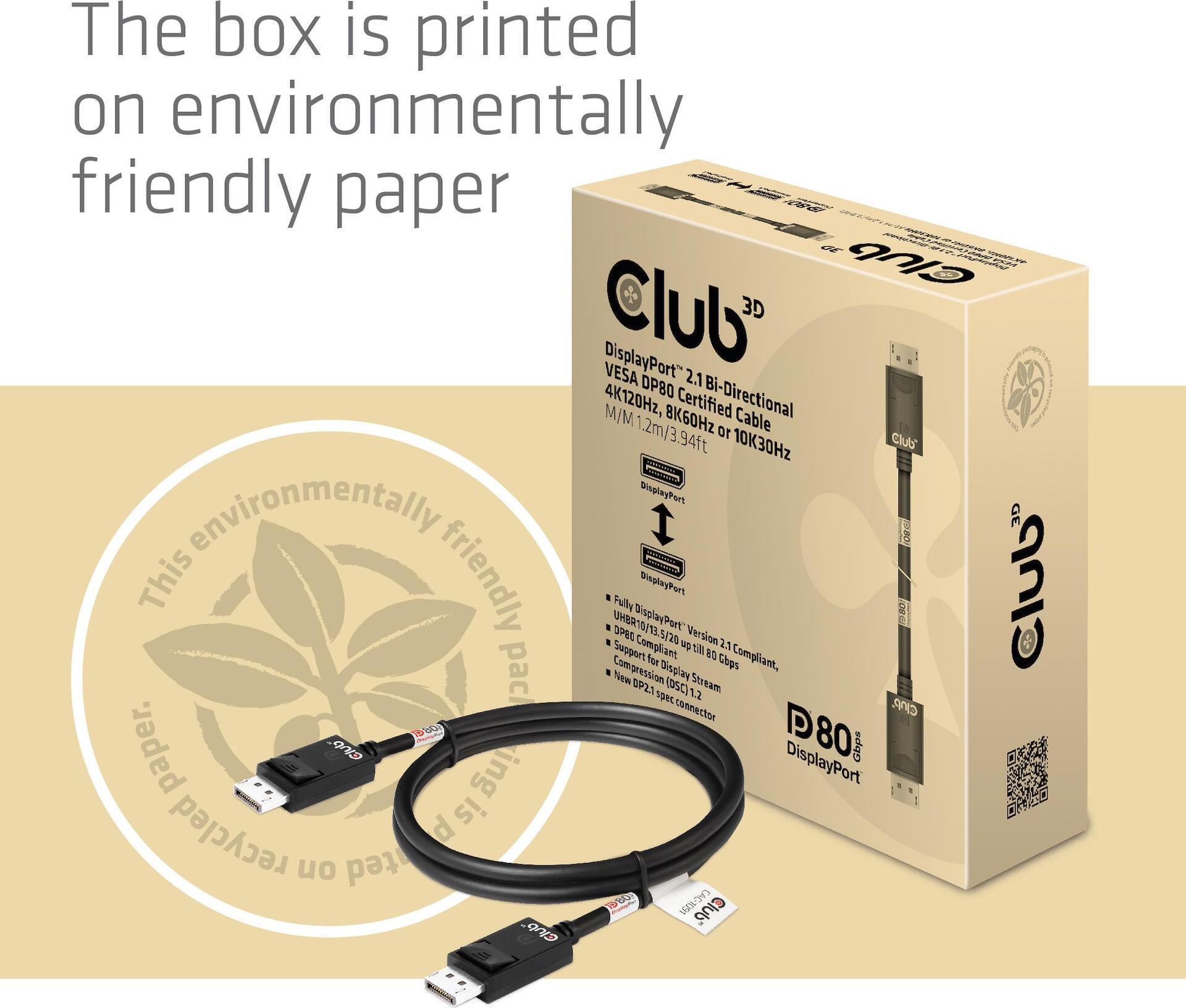 Club 3D - DisplayPort-Kabel - DisplayPort (M) zu DisplayPort (M) - DisplayPort 2,1 - 1,2m - Support von 4K 120 Hz, Support von 8K 60 Hz, bi-direktional, unterstützt 10K 30 Hz (10,240 x 4,320), VESA DP80 Certified (CAC-1091)