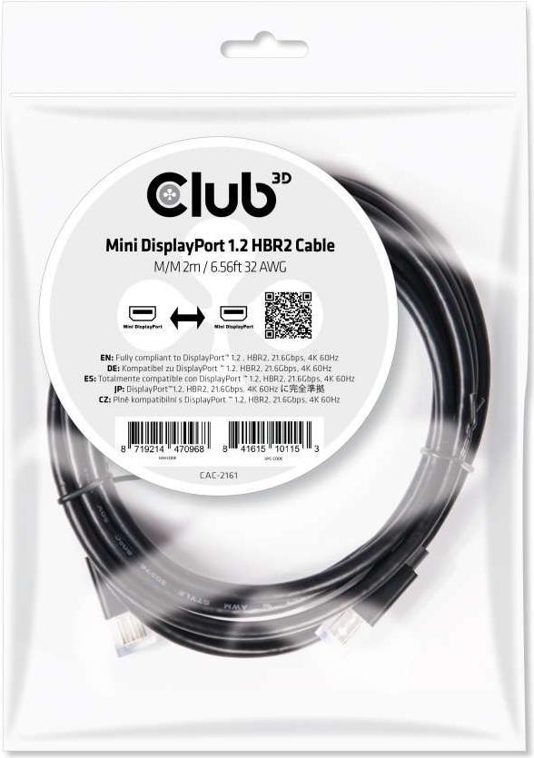 Das Club 3D Mini DisplayPort 1.2 Kabel ermöglicht die Verbindung Ihres mit einem Mini DisplayPort ausgestatteten (Gaming) PC oder Laptop mit einem Mini DisplayPort Monitor oder einem anderen mit Mini DisplayPort ausgestatteten Produkt. Der Club 3D CAC-2161 unterstützt die DisplayPort 1.2 Spezifikationen und ist Abwärtskompatibel zu früheren Versionen.