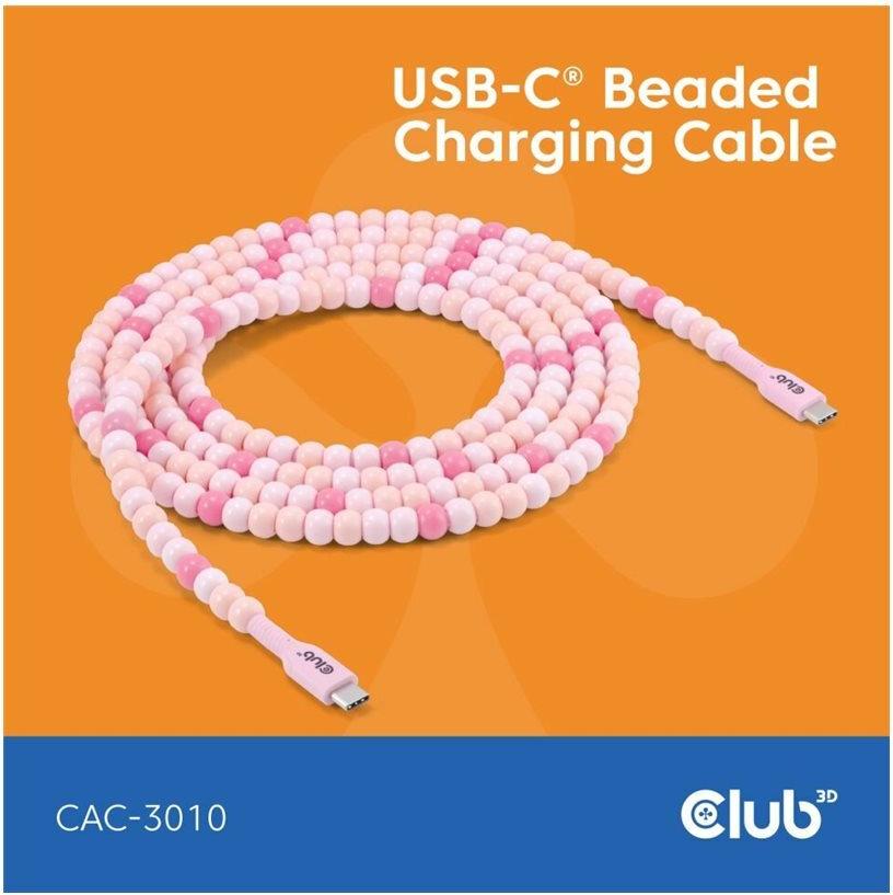 Club 3D Lifestyle USB-C Perlen-Kabel PD60W 480Mbps 2m rosa retail - Kabel - Digital/Daten (CAC-3010)