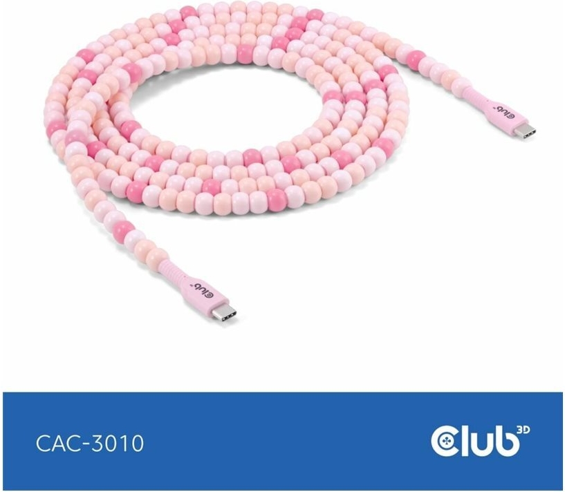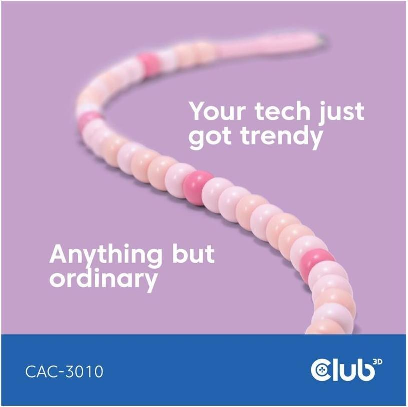 • Club 3D Lifestyle USB-C Perlen-Kabel PD60W 480Mbps 2m rosa retail (CAC-3010)