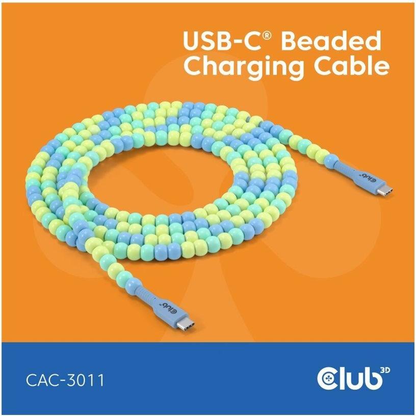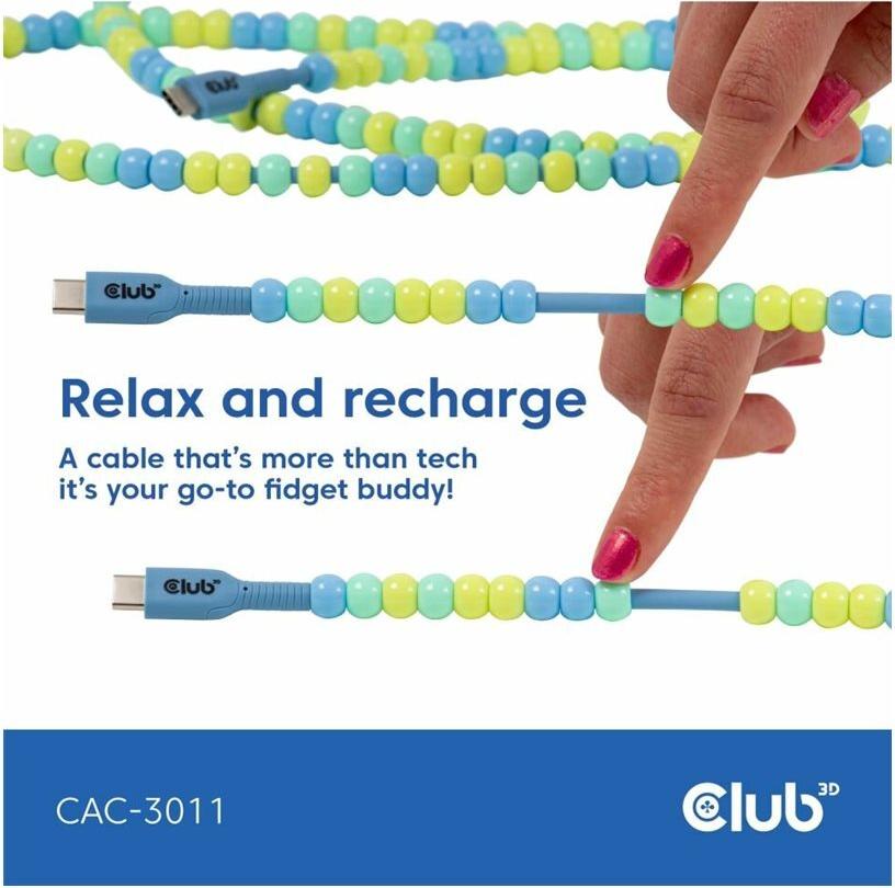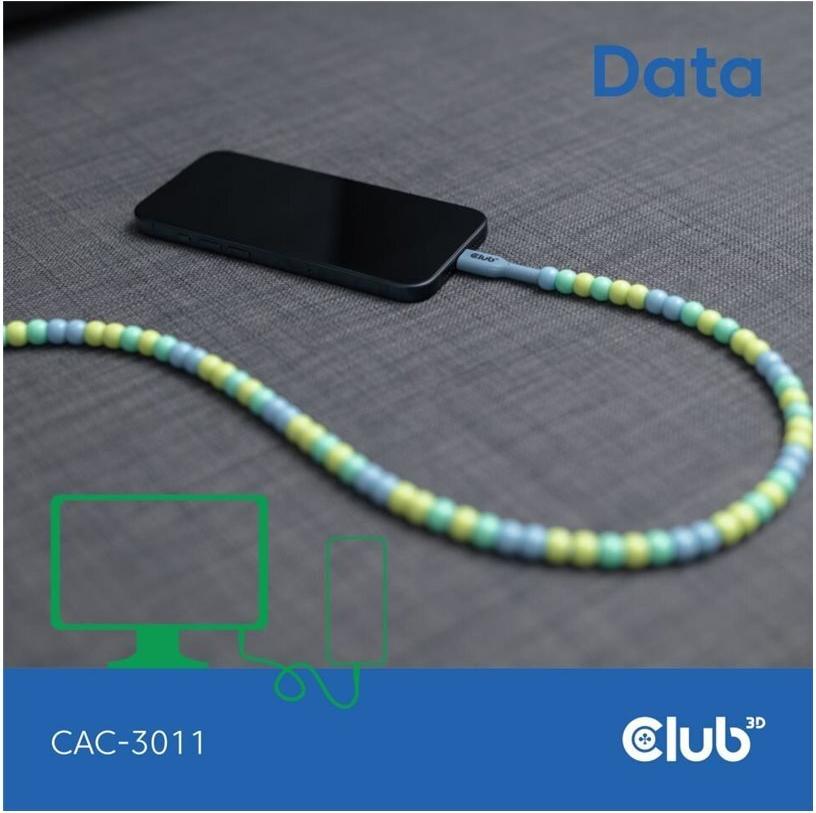 • Club 3D Lifestyle USB-C Perlen-Kabel PD60W 480Mbps 2m blau retail (CAC-3011)
