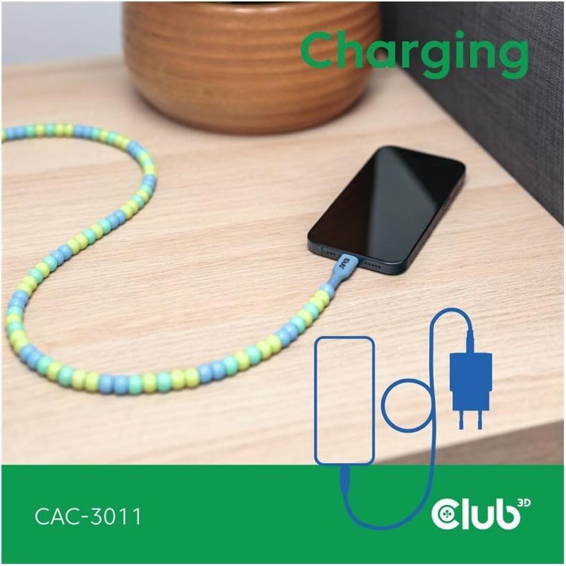 Club 3D Lifestyle USB-C Perlen-Kabel PD60W 480Mbps 2m blau retail - Kabel - Digital/Daten (CAC-3011)