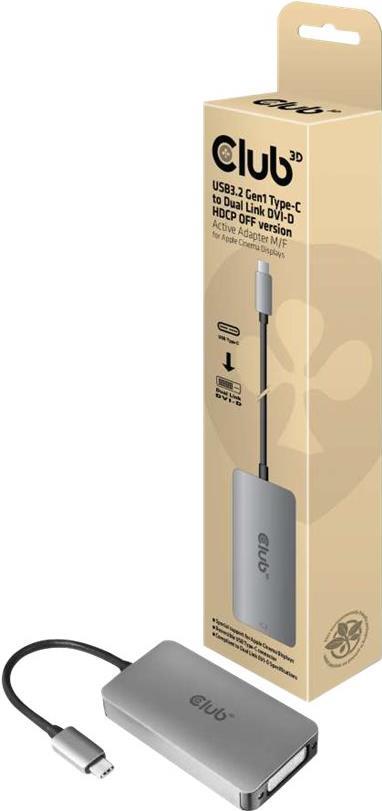 Der Club 3D CAC-1510-A ist ein USB 3.2 Gen 1 Type-C Eingang auf Dual Link DVI-D oder Single Link DVI Ausgang Adapter als HDCP OFF Version für Apple Cinema Displays oder andere Displays, die kein HDCP unterstützen.