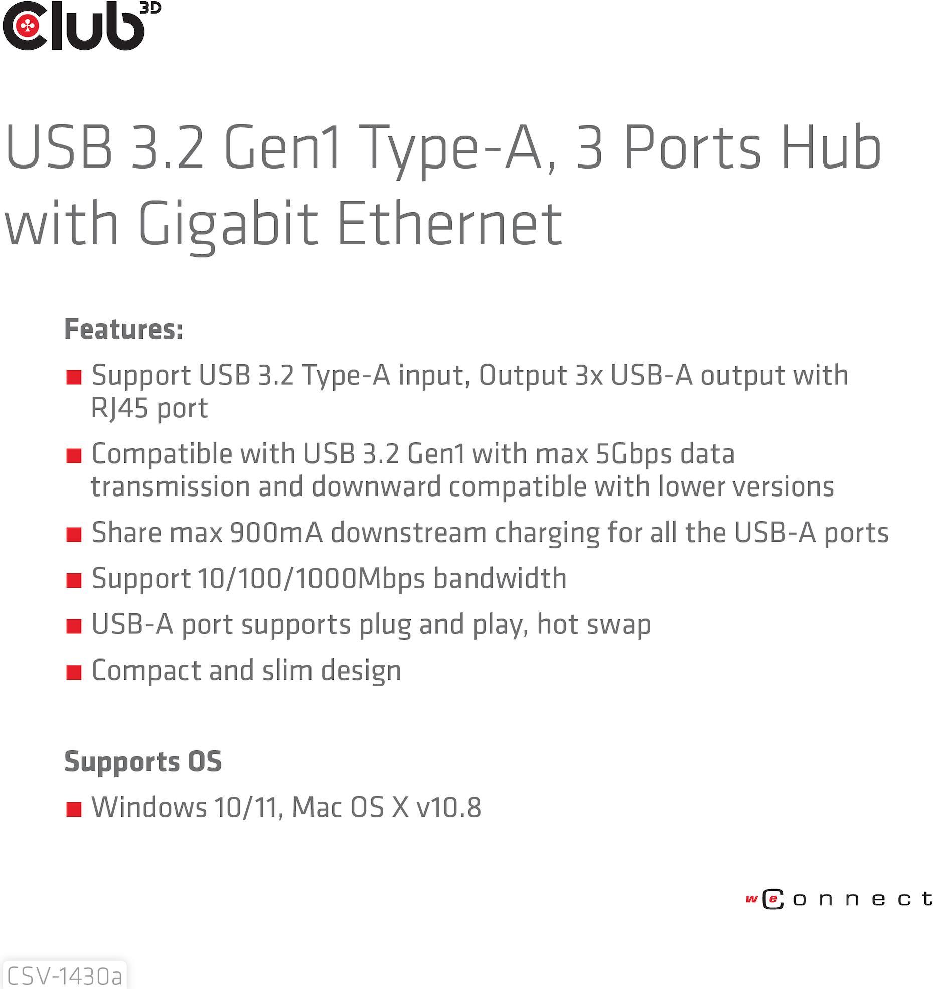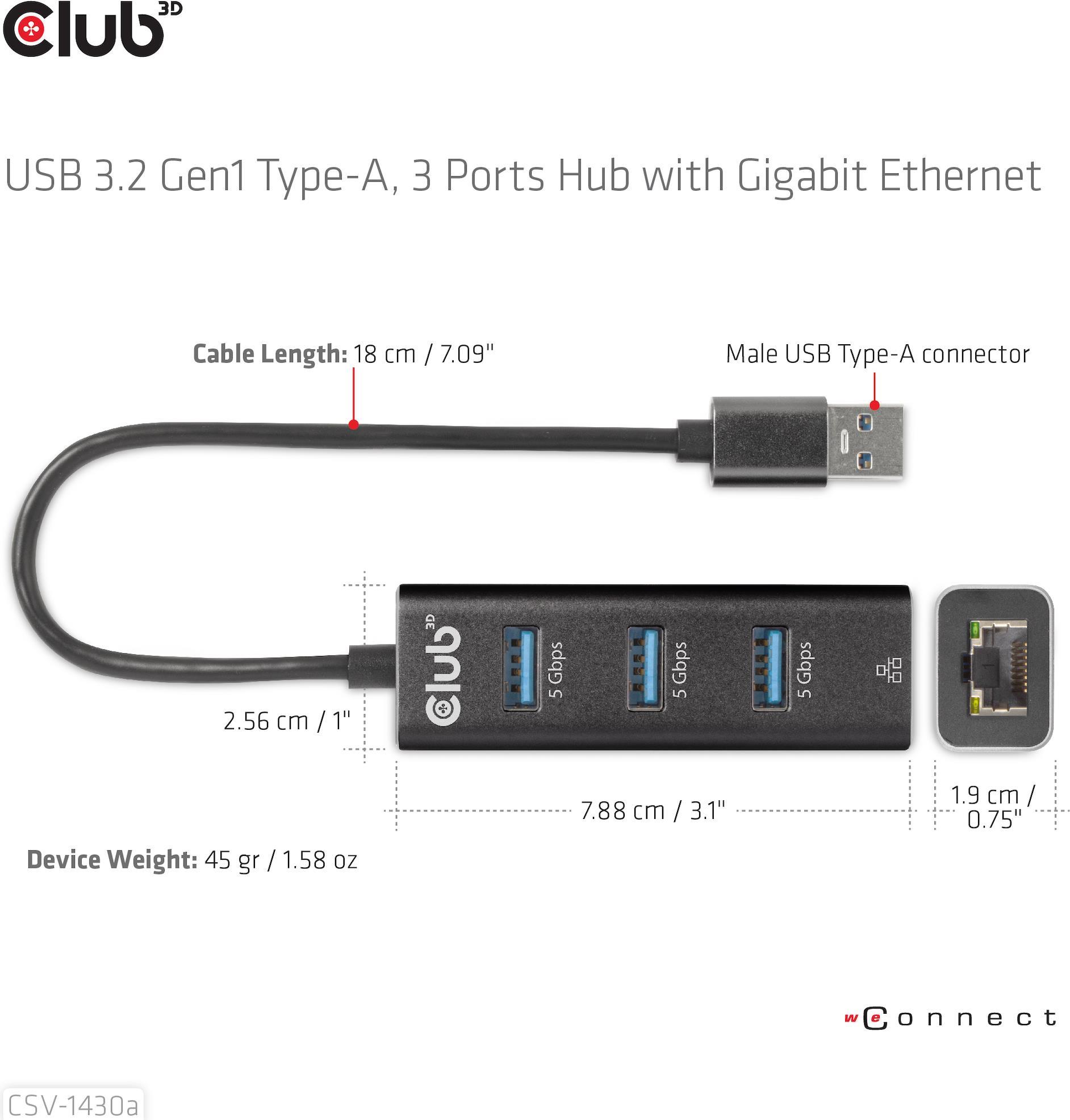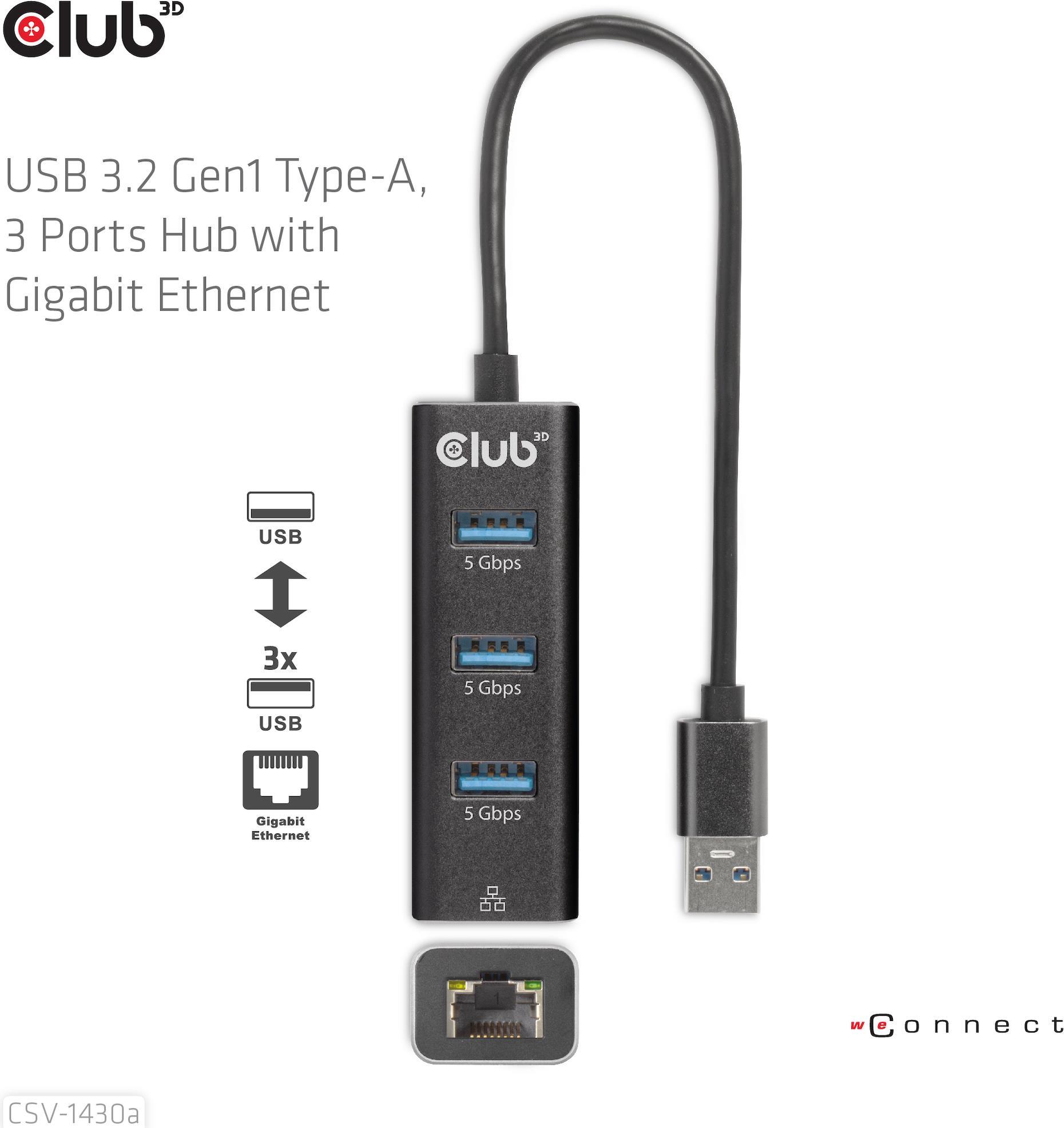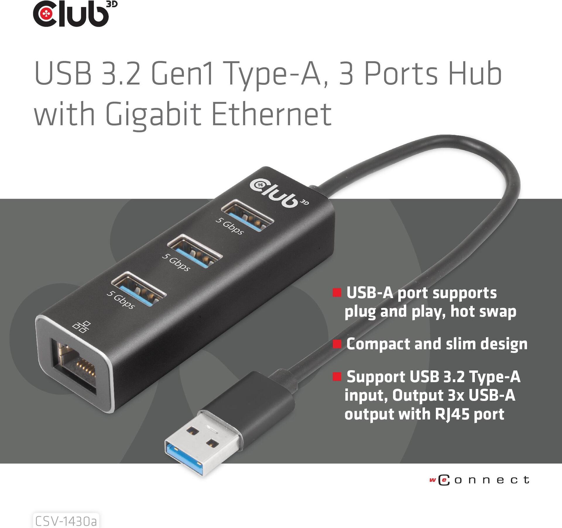 CLUB3D CSV-1430a Kabelgebunden USB 3.2 Gen 1 (3.1 Gen 1) Type-A Schwarz (CSV-1430A)