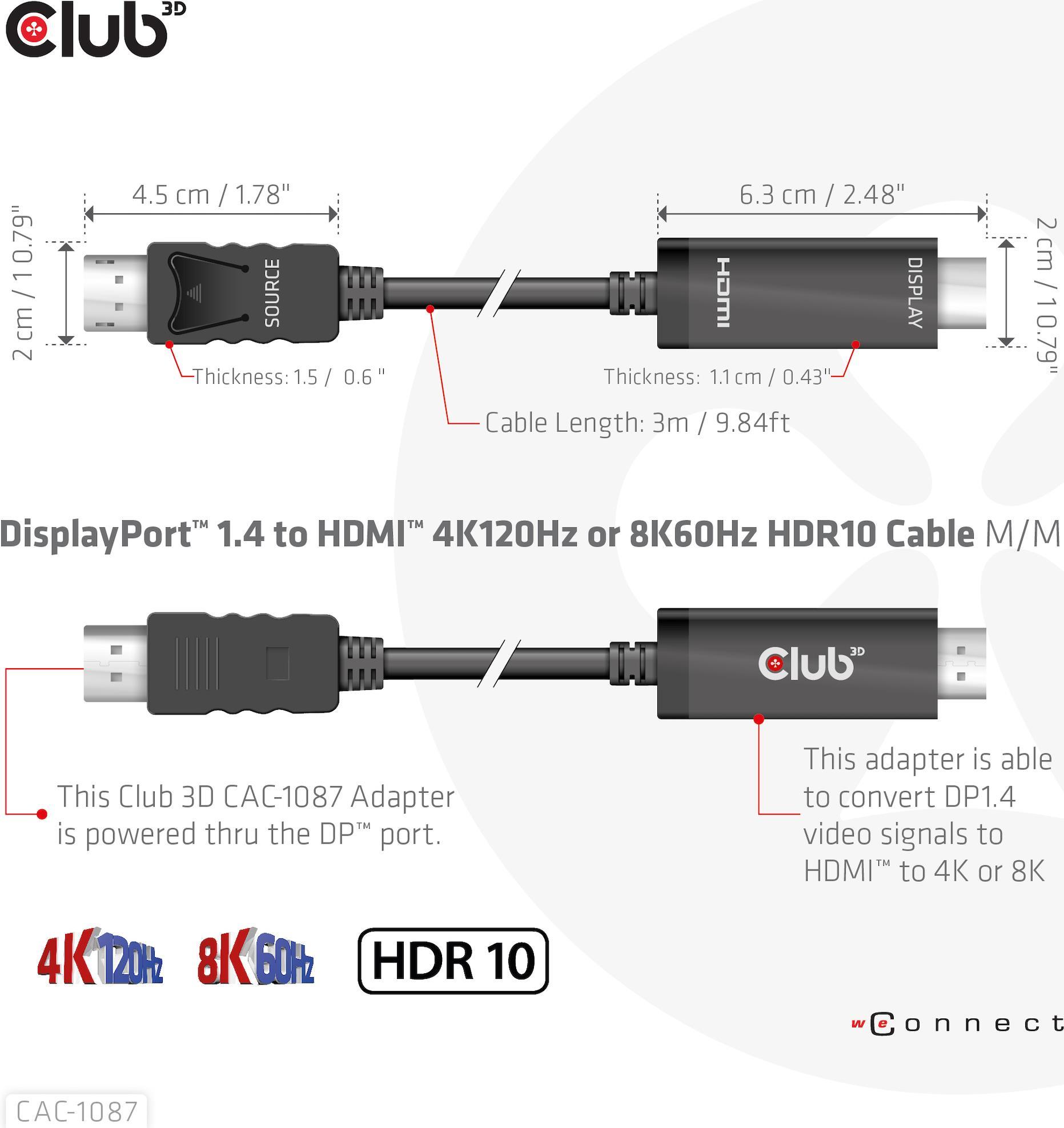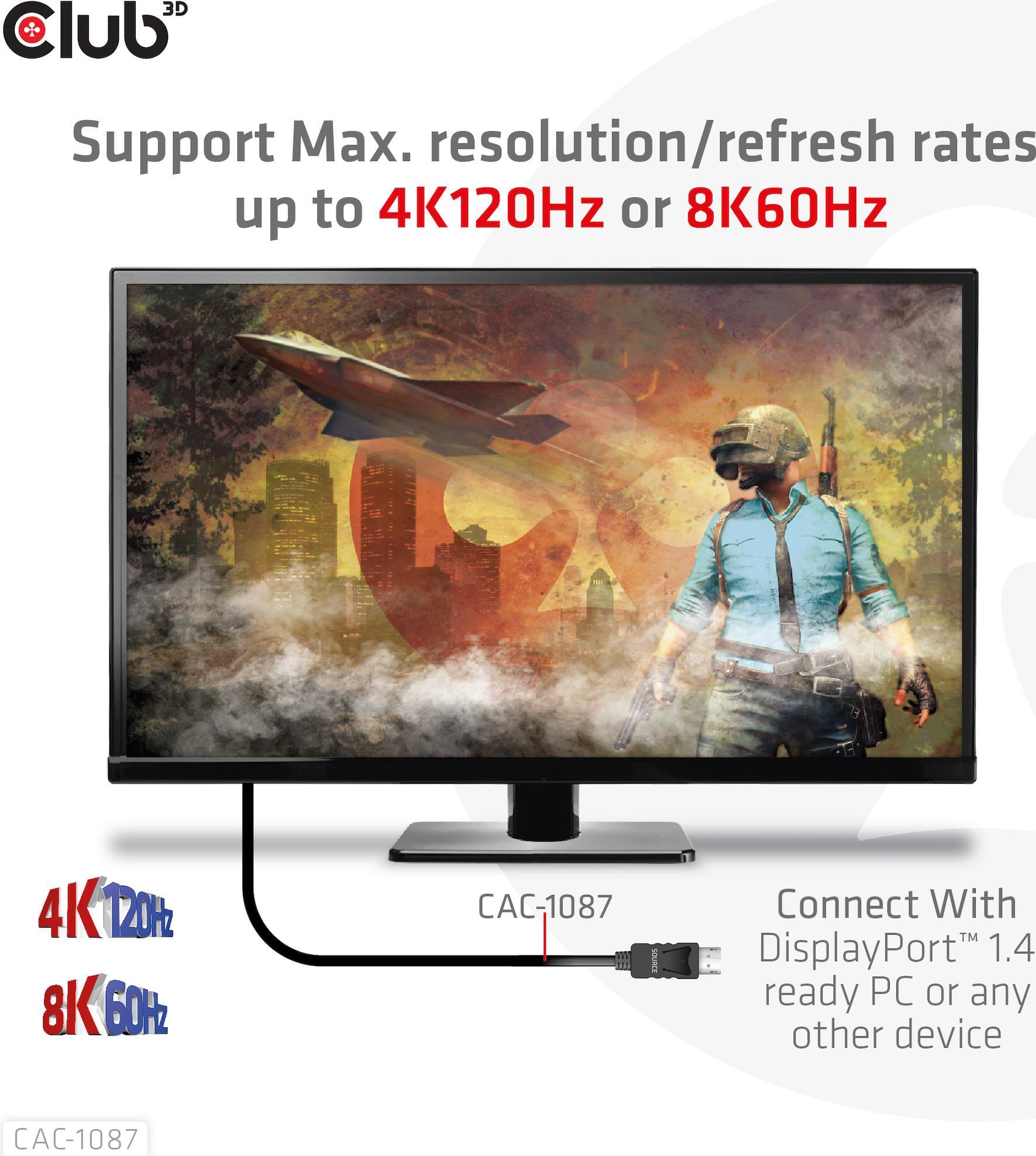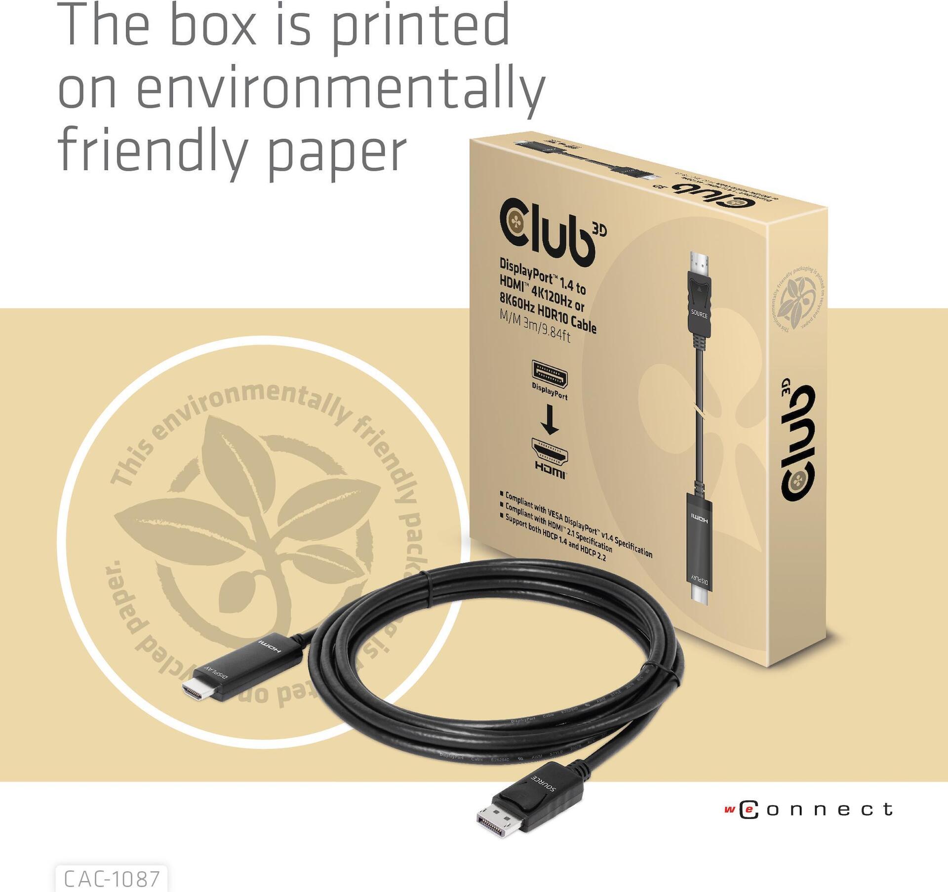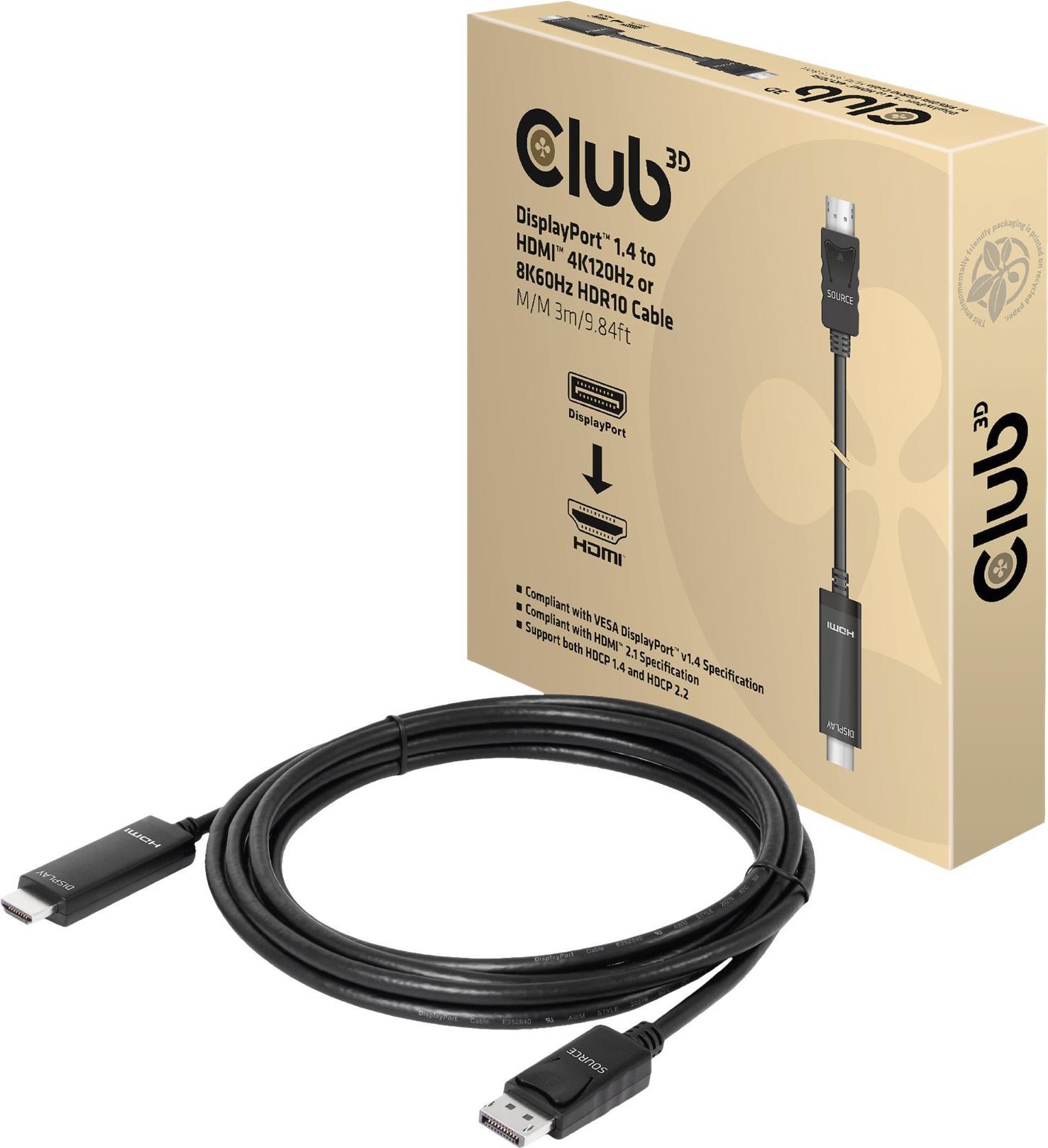 Club 3D - Adapterkabel - DisplayPort männlich zu HDMI männlich - 3,0m - Support von 4K 120 Hz, Support von 8K 60 Hz, support Dynamic HDR10 (CAC-1087)