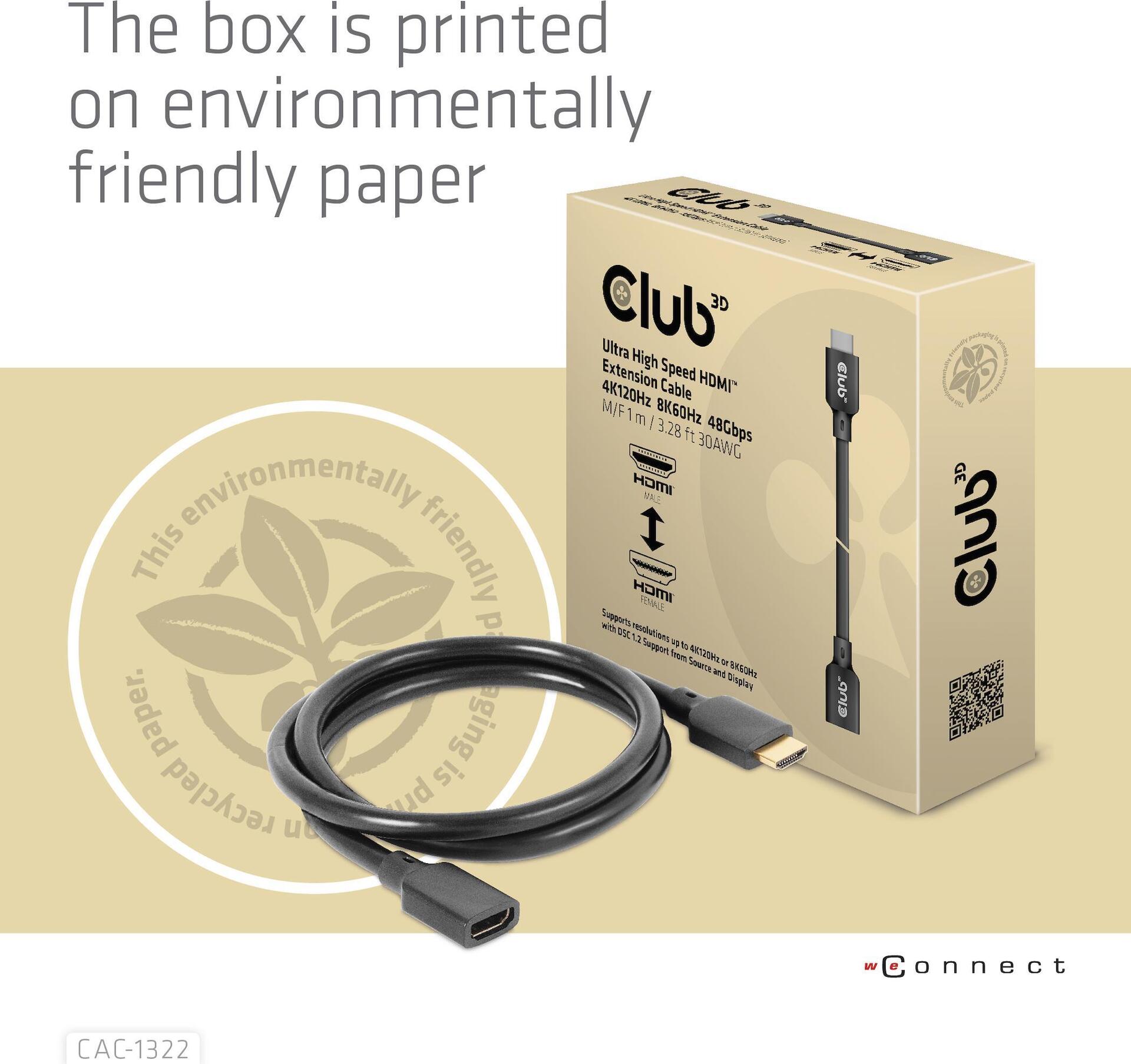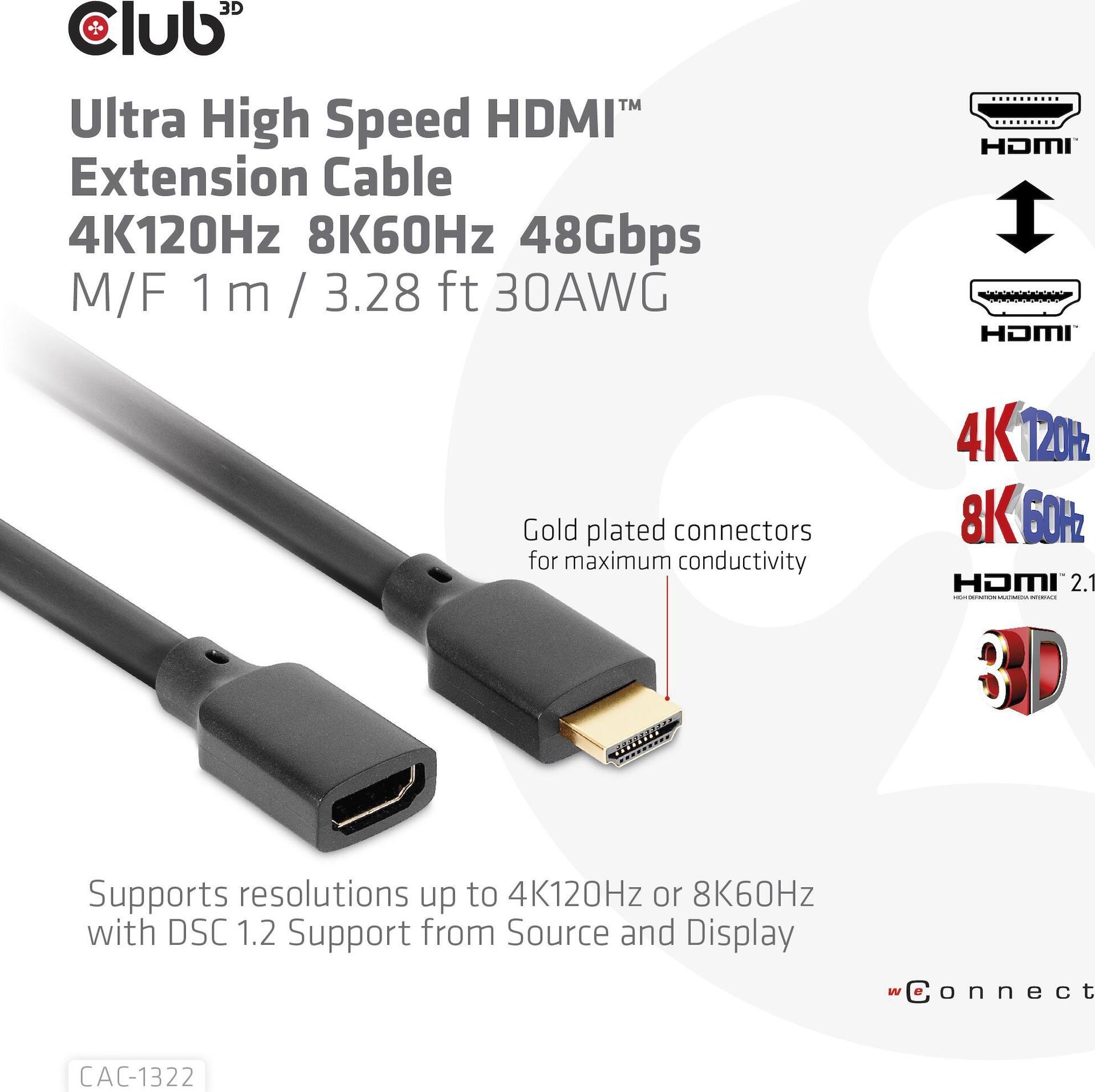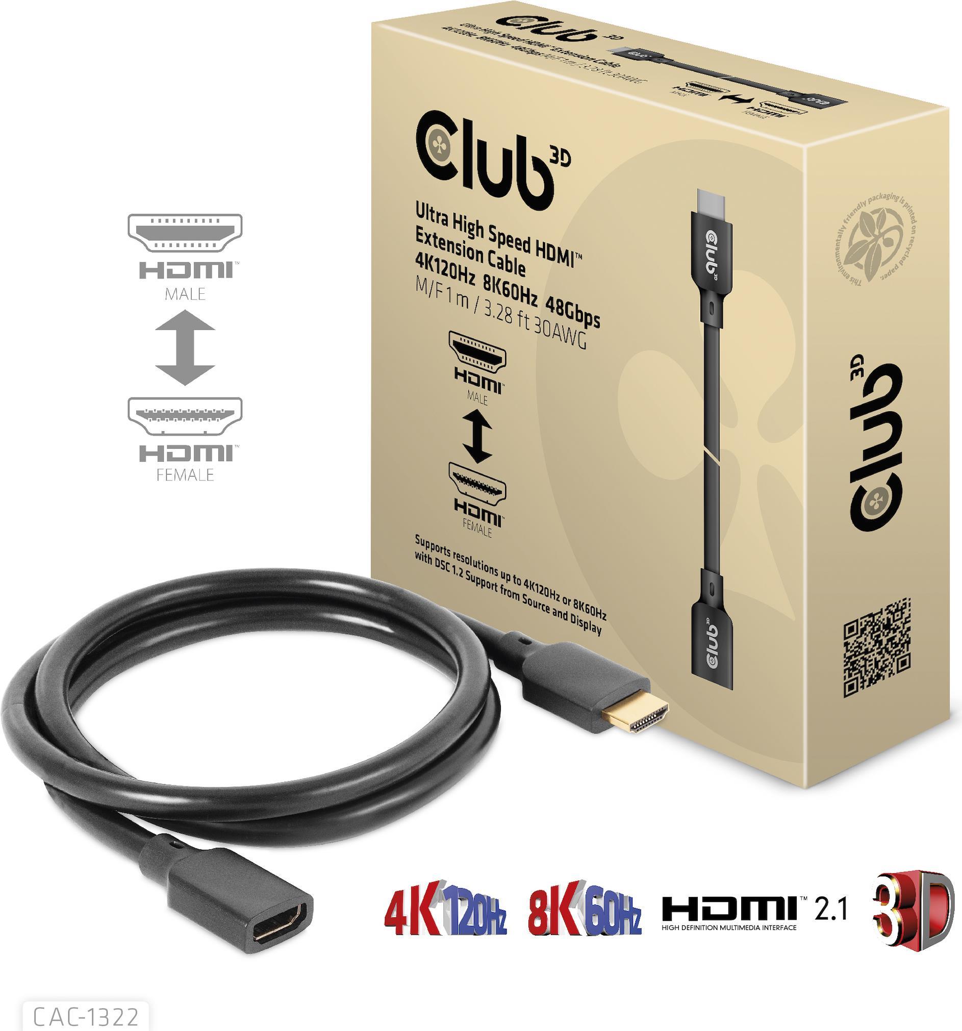 Club 3D - Ultra High Speed - HDMI-Verlängerungskabel - HDMI (Stecker) männlich zu HDMI weiblich - 1 m - 4K Unterstützung