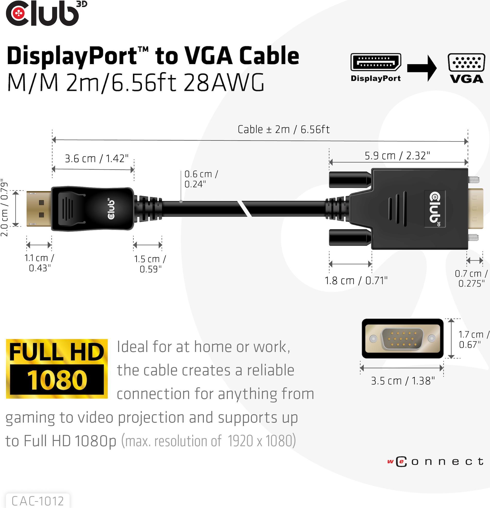 Club 3D - Video-Adapterkabel - DisplayPort zu HD-15 (VGA) - 2 m |