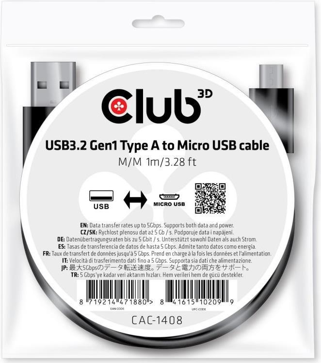 Club 3D USB-Kabel - USB Typ A bis Micro-USB Type B - 1 m |