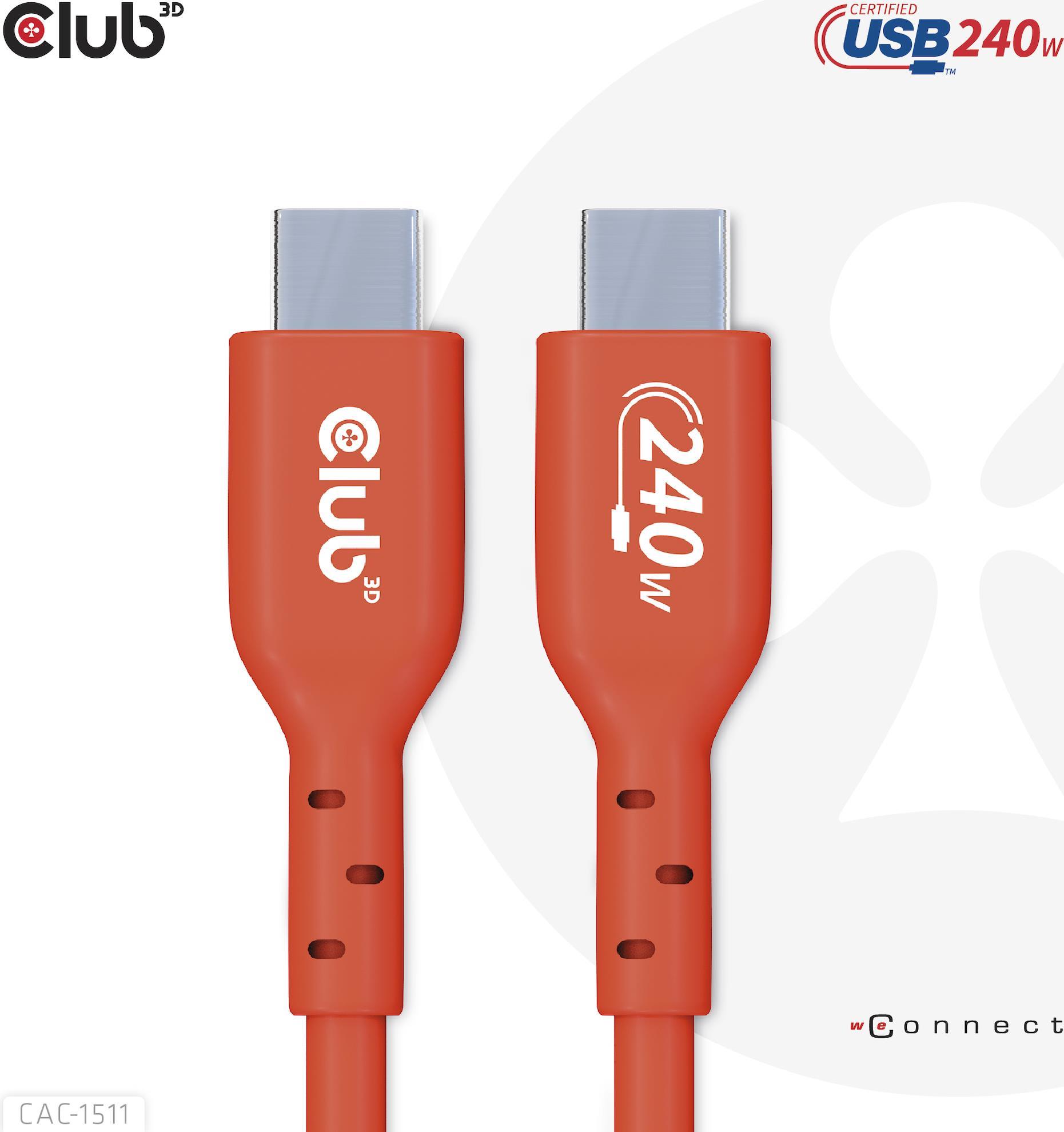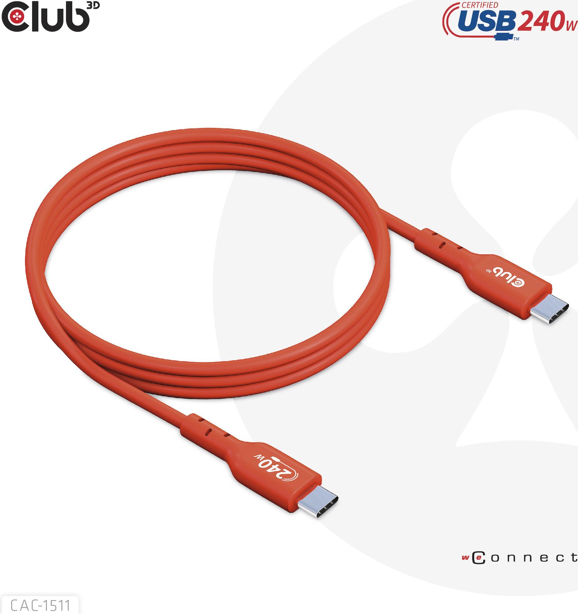 Club 3D - USB-Kabel - 24 pin USB-C (M) zu 24 pin USB-C (M) - USB 2.0 - 48 V - 5 A - 4 m - bi-direktional, unterstützt bis zu 240 W Spannungsversorgung, Baureihe mit erweitertem Leistungsbereich (EPR