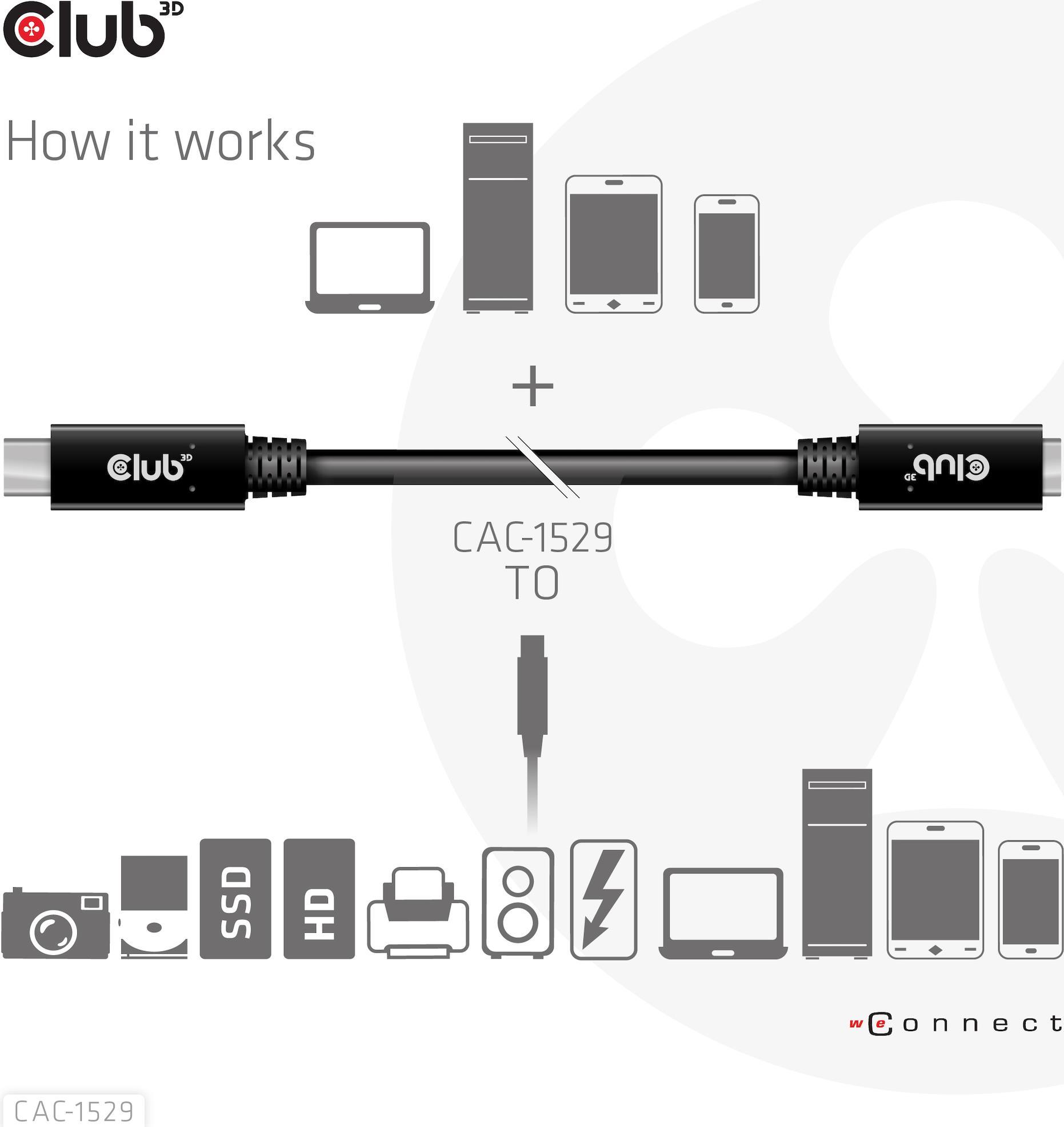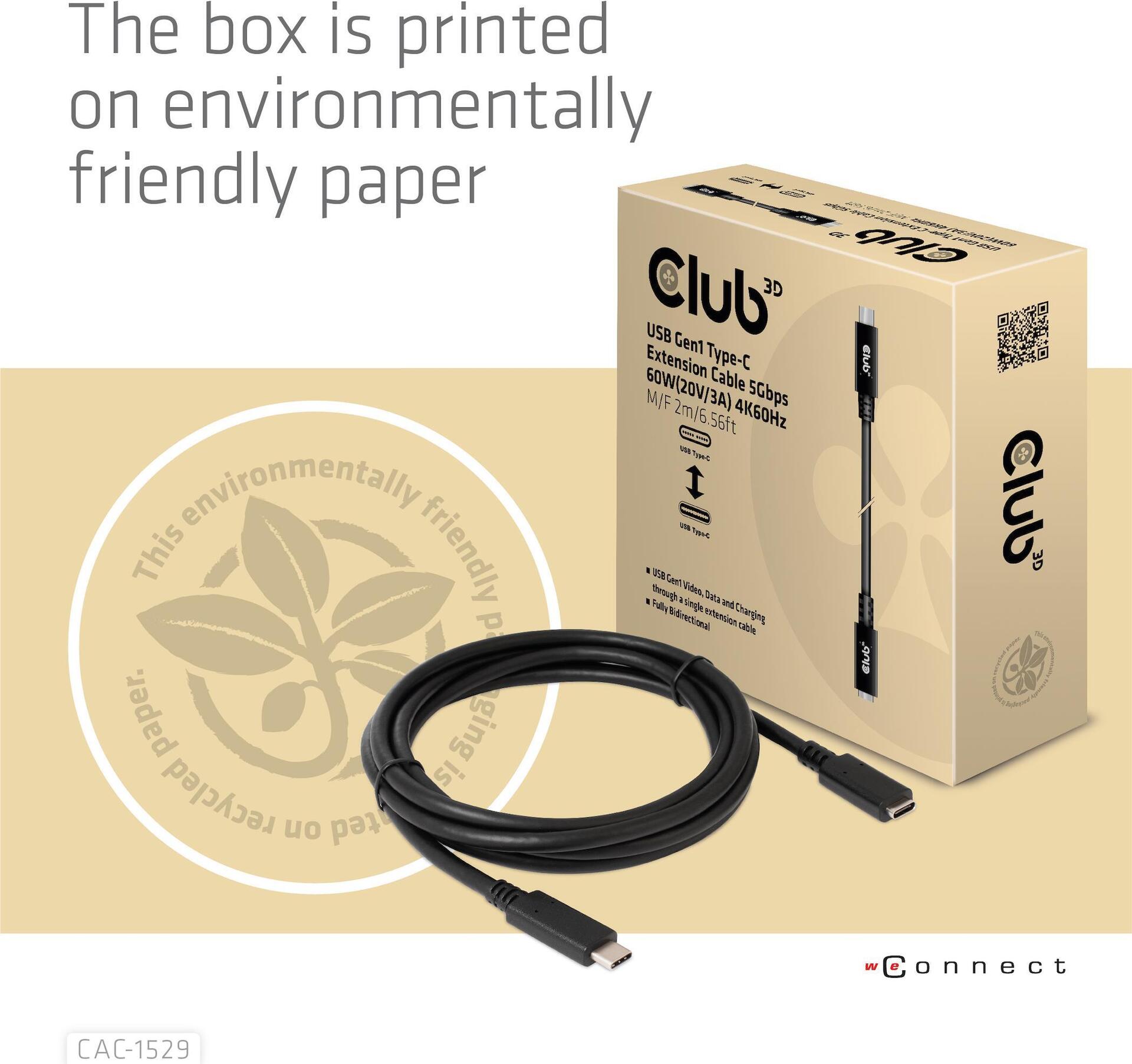 Das Club 3D CAC-1531 USB Gen 1 Typ-C Verlängerungskabel 5 Gbps 60 W (20 V/3 A) 4K@60 Hz St./B. (1 m) verbindet Ihr Notebook, Tablet oder Telefon über den USB-Typ-C Ausgang mit Ihren bevorzugten vorhandenen Peripheriegeräten, Zubehör und Ladegeräten. Es ermöglicht Video, Daten und Strom über ein einziges Kabel und in beide Richtungen. Dieses Kabel unterstützt USB Gen 1 Video bis zu 4K@60 Hz, Daten bis zu 5 Gbps und bis zu 60 Watt (20 V/3 A) Ausgang zum Downstream-Laden oder zur Stromversorgung Ihres Notebooks, Tablets oder Smartphones.