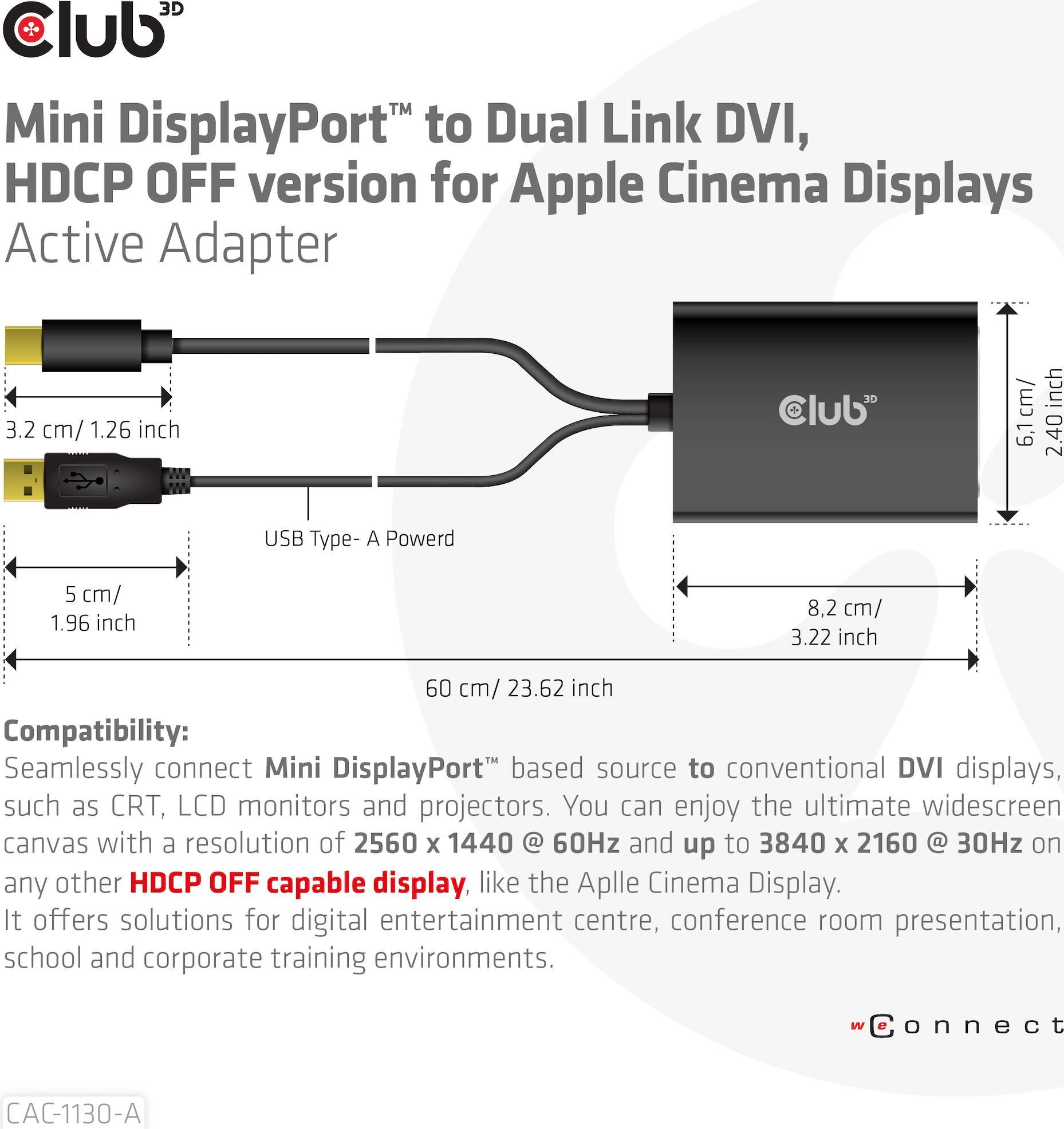 4K Unterstützung, aktiver Adapter, HDCP OFF, Farbtiefe von 24 Bit |