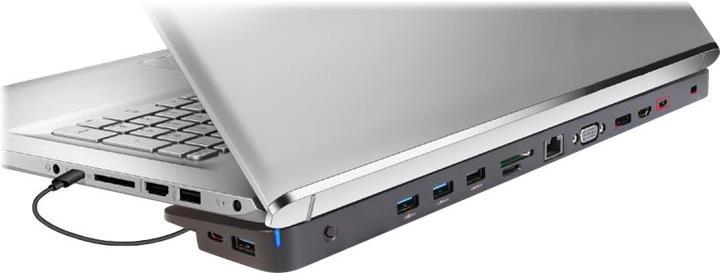 Die Club-3D USB 3.2 Gen 1 Triple Display Dynamic PD Docking Station mit Ladefunktion ist eine integrierte Lösung, die Video, Daten, Strom, Ethernet und Audio kombiniert, insbesondere für Leute, die viel unterwegs sind. Die drei unterschiedlichen Videoausgänge (HDMI, DisplayPort, VGA) ermöglichen Ihnen, durch den Einsatz des MST Modus, 3 unterschiedliche Bilder oder Videos auf 3 unterschiedlichen Displays gleichzeitig zu genießen. Die USB Typ A Ports und der USB Typ C Data Port ermöglichen Ihnen den Anschluss vieler USB Produkte an den Host. Der USB Typ C Port mit Ladefunktion erlaubt Ihnen, diese Docking Station mit Strom zu versorgen und gleichzeitig den Host PC durch Anschluss eines PD Netzteils zu laden ohne, dass Sie das Notebook-Netzteil mitnehmen müssen. Der Nutzer kann also mit weniger Gewicht reisen.