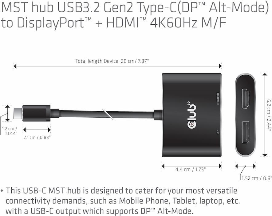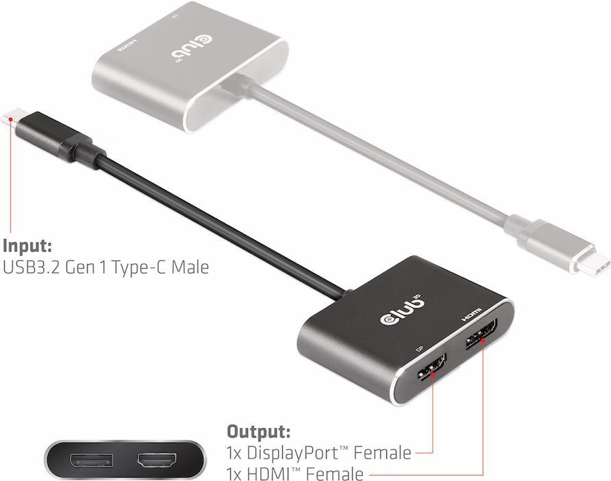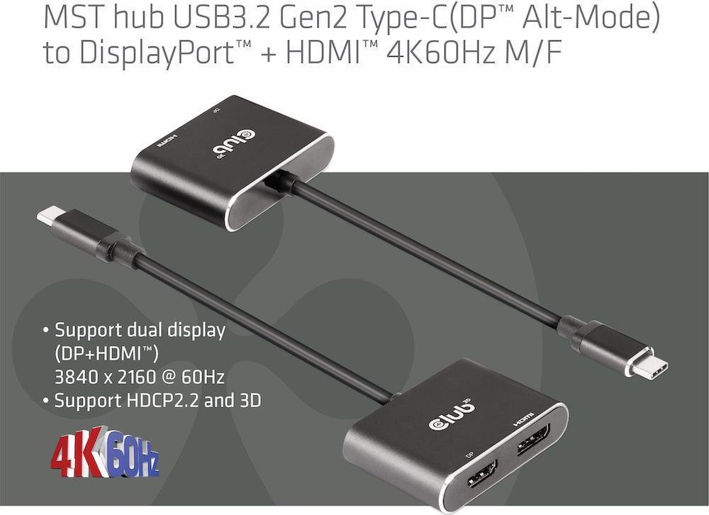 Club3D USB-Hub USB 3.2 Typ C > DP/HDMI 4K60Hz St/Bu retail (CSV-1552)