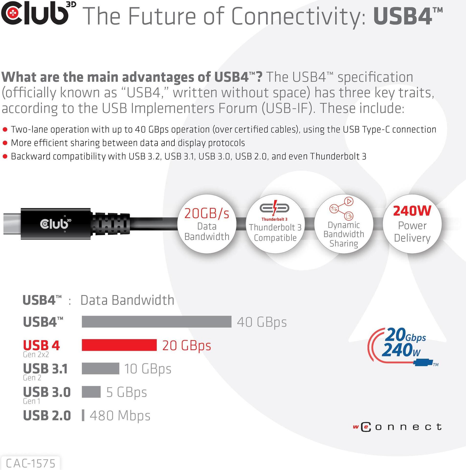 Bi-direktional, Support von 4K 60 Hz, up to 240W power delivery support, extended power range (EPR), umkehrbarer Adapter, E-Marker Chip, 20 Gbps Datenrate |