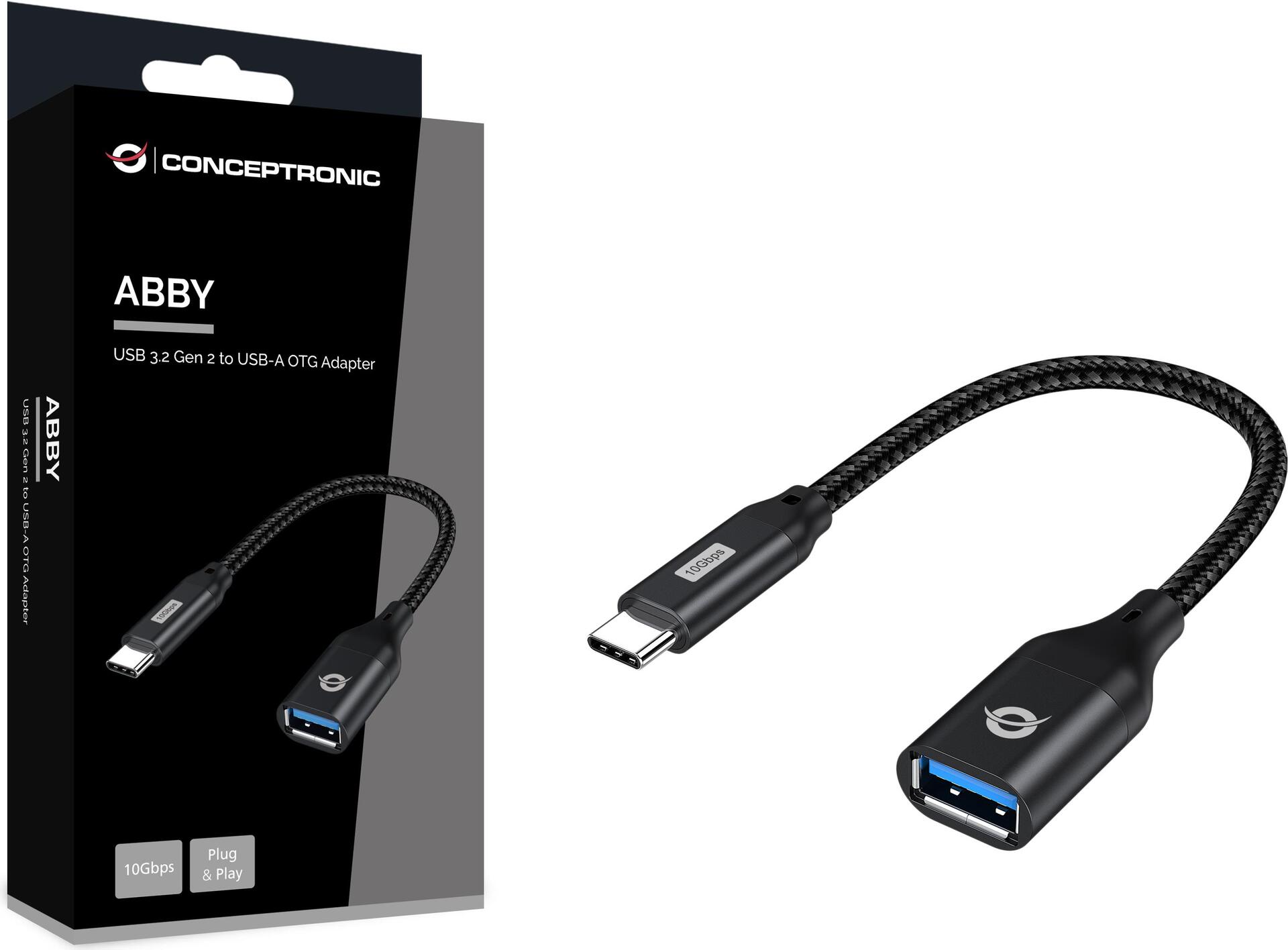 Conceptronic ABBY18B OTG-Adapter für USB 3.2 Gen 2 zu USB-A. Anschluss 1: USB-C, Anschluss 2: USB-A. Produktfarbe: Schwarz (ABBY18B)