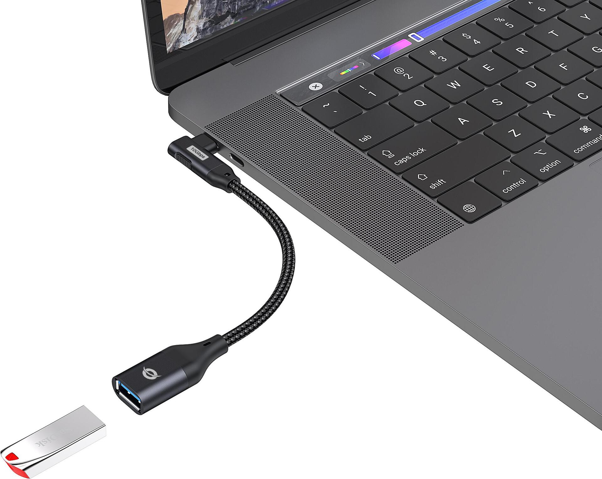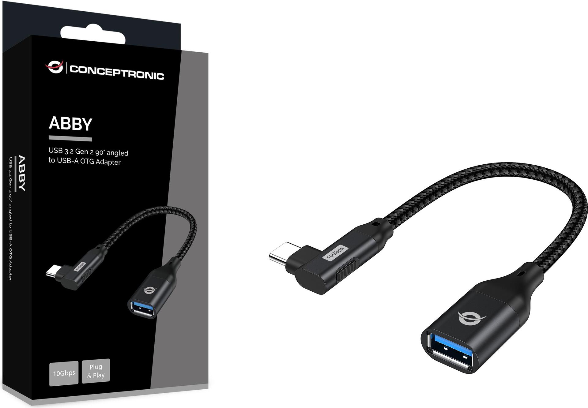 Conceptronic ABBY19B OTG-Adapter für USB 3.2 Gen 2 90° abgewinkeltes zu USB-A. Anschluss 1: USB-C, Anschluss 2: USB-A. Produktfarbe: Schwarz (ABBY19B)