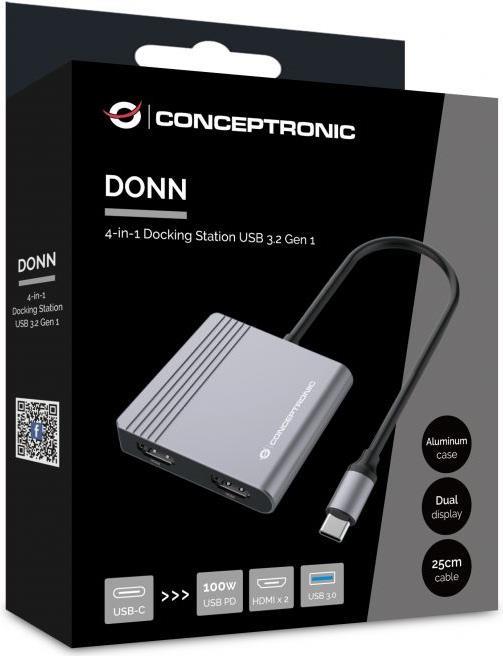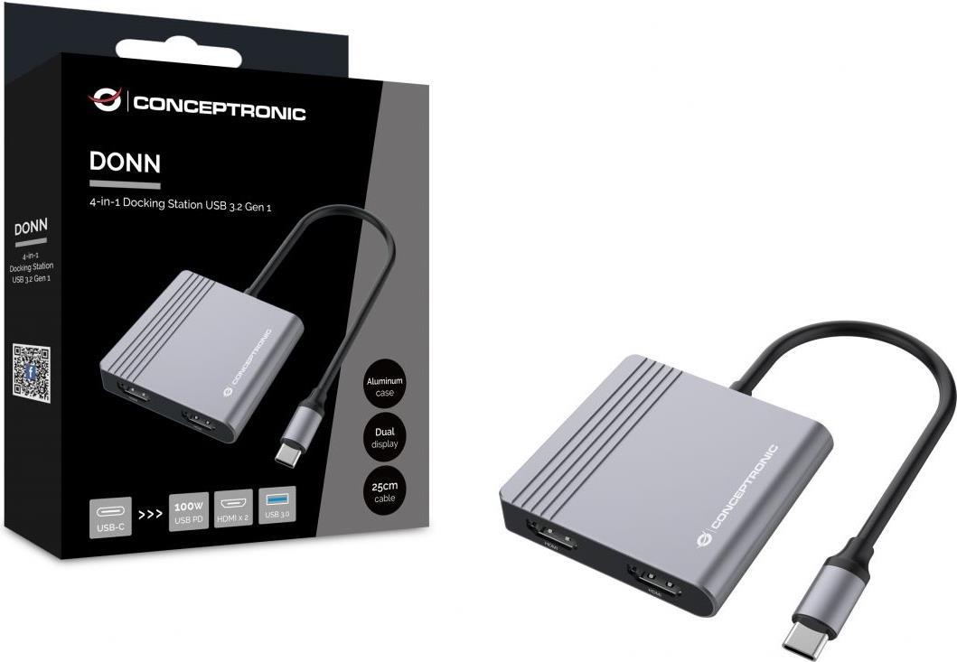 CONCEPTRONIC Adapter USB-C->2xHDMI,USB-C PD,1xUSB3.0 0.25 gr (DONN13G)