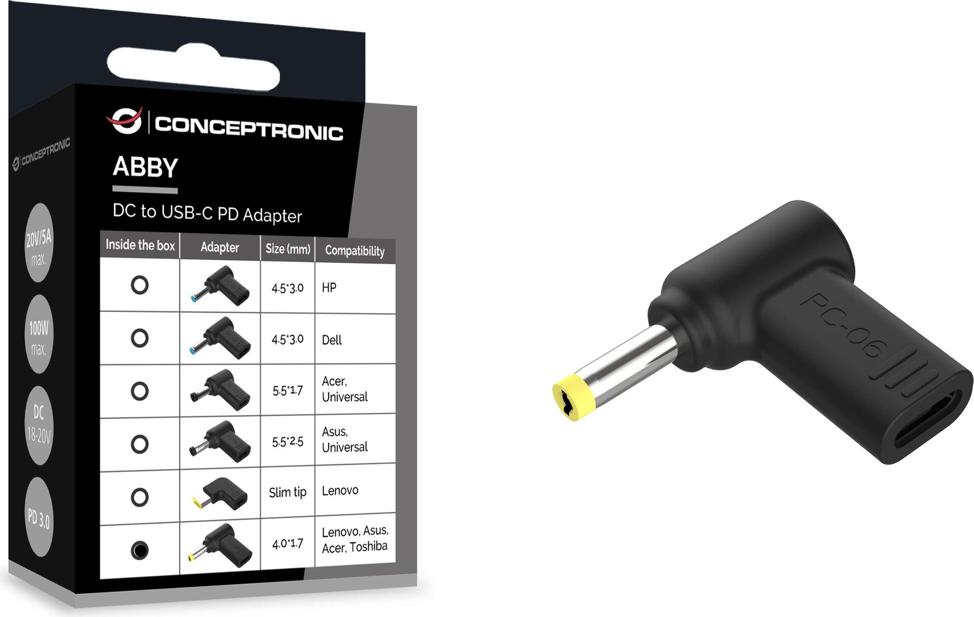 Conceptronic ABBY15PC06 DC-zu-USB-C-Adapter - Lenovo/Asus/Acer/Toshiba 4.0x1.7mm - 18-20V (ABBY15PC06)