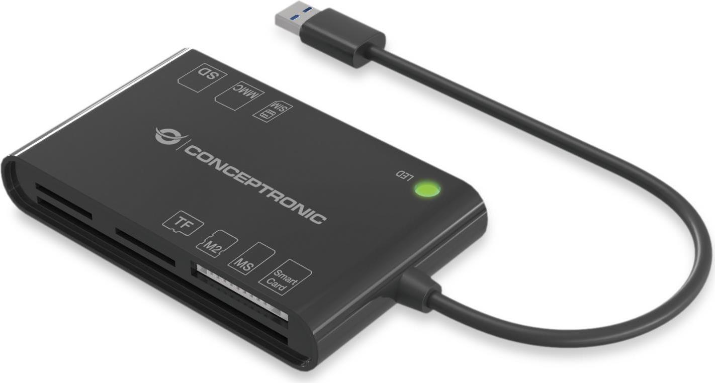 Conceptronic BIAN All-in-One Smart-ID Kartenleser - EMV (Chip & PIN) - MMC - MS Micro (M2) - Speicherstick (MS) - MicroSD (TransFlash) - SD - SDHC - SDXC - Indoor - Schwarz - China - USB 3.2 Gen 1 (3.1 Gen 1) (BIAN01B)