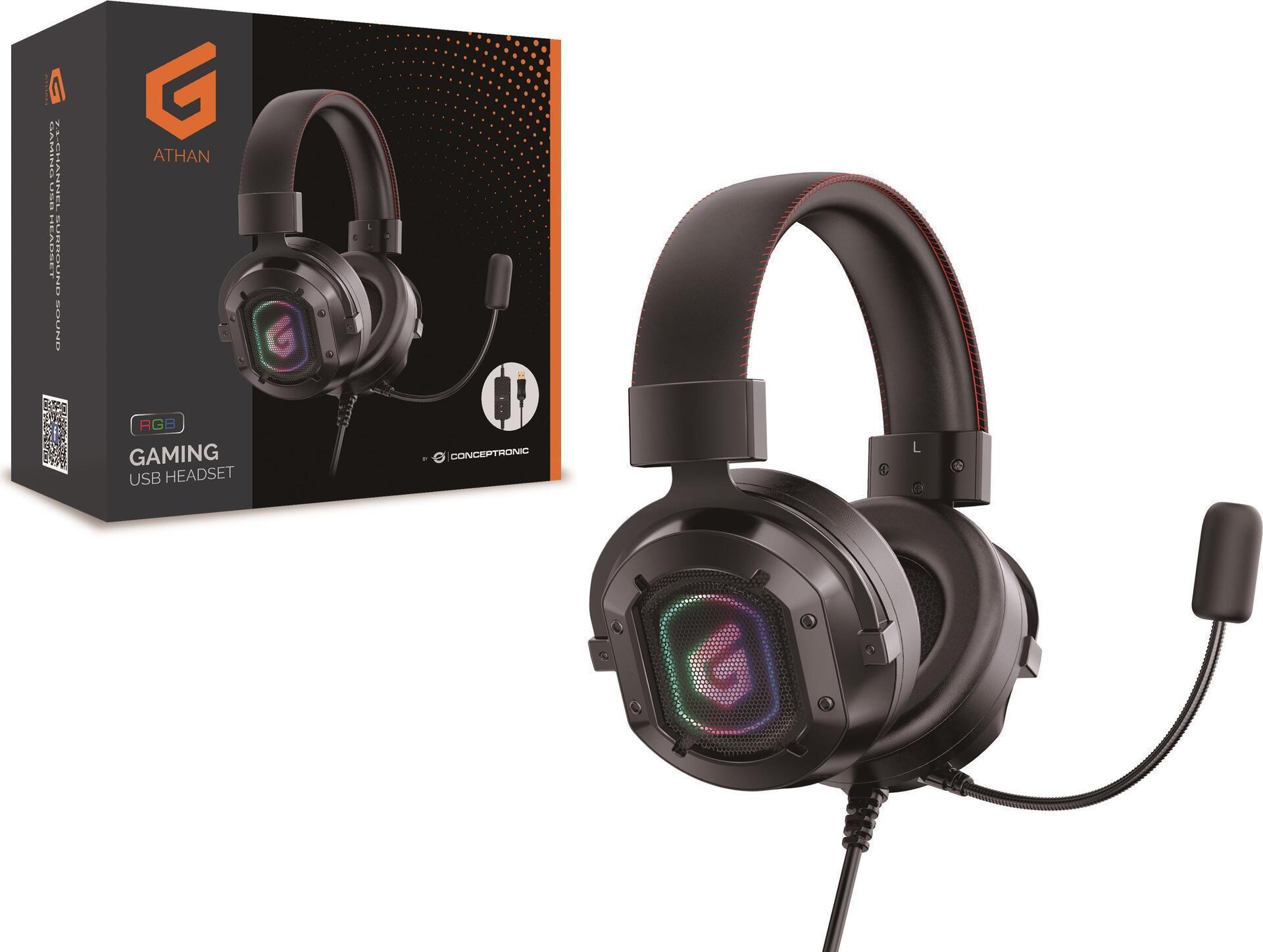 Conceptronic ATHAN02B - Headset - 7.1-Kanal - ohrumschließend - kabelgebunden - USB-A - Schwarz