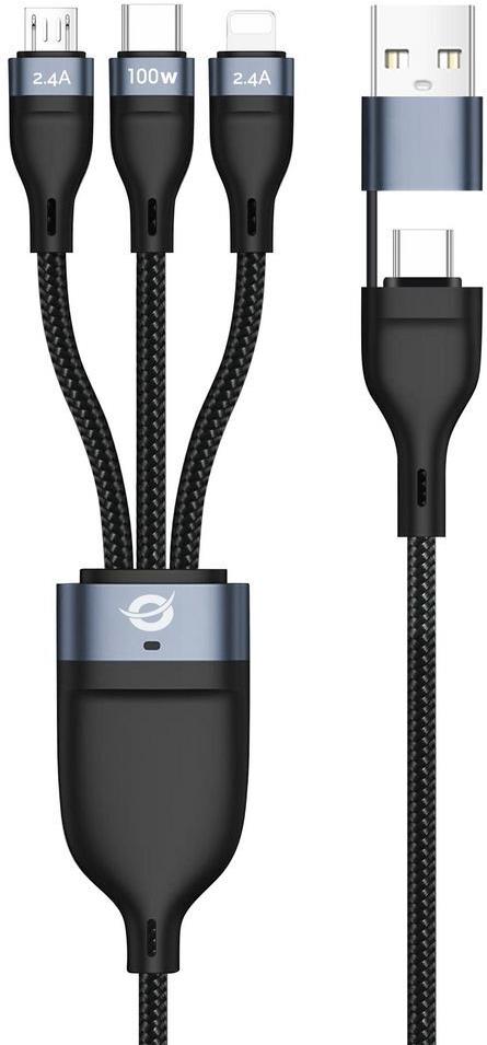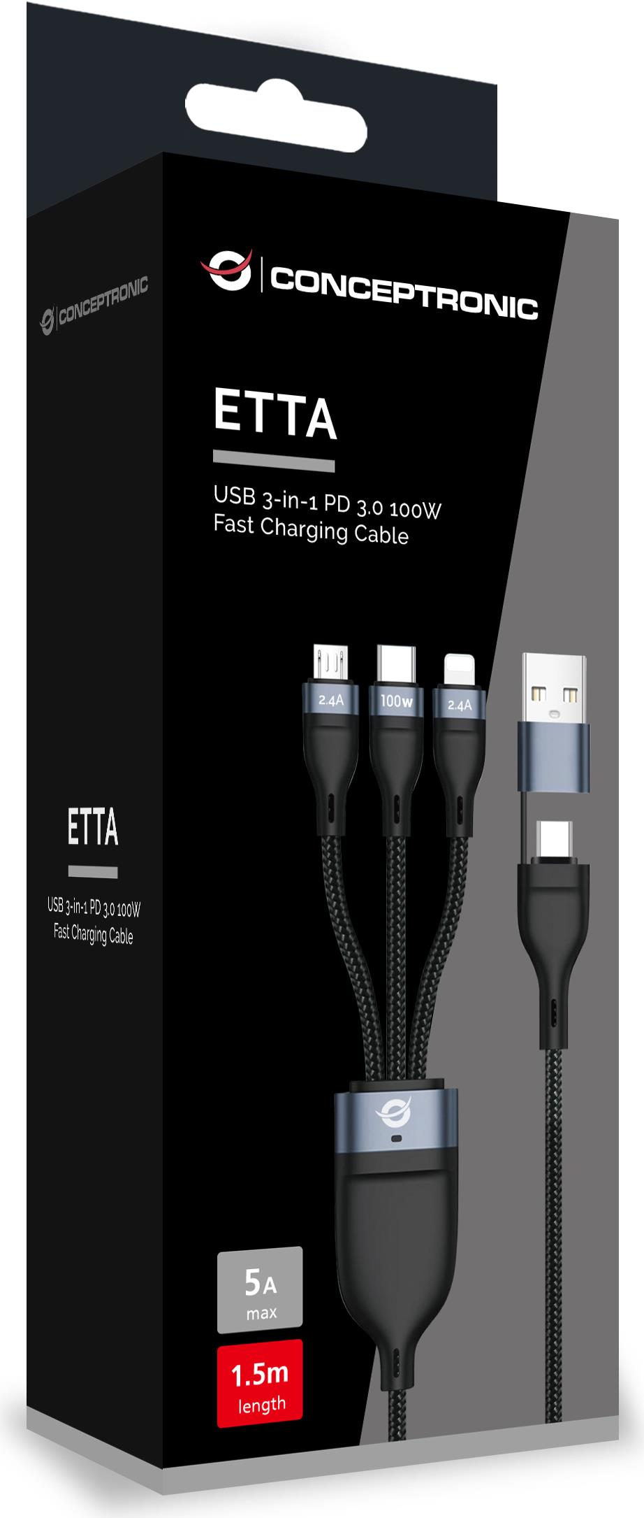 Conceptronic ETTA06B15 USB 3-in-1 PD 3.0 100W Schnellladekabel - 1,5m - 20V 5A - 480Mbps - E-Mark (ETTA06B15)