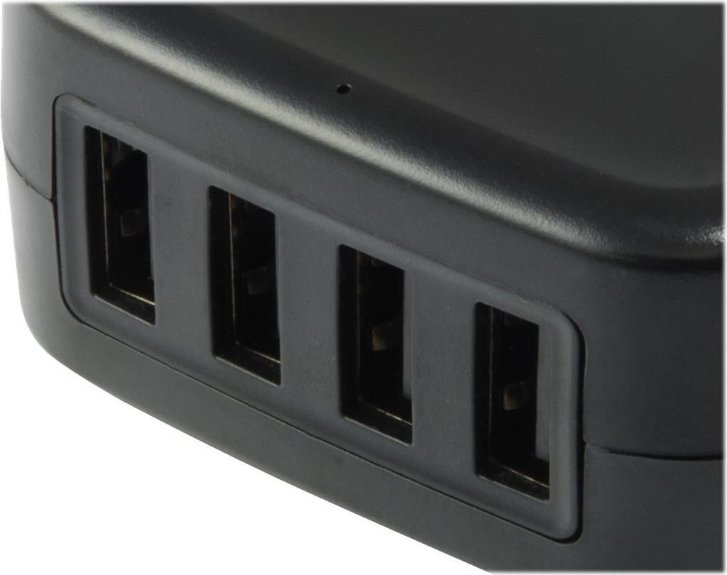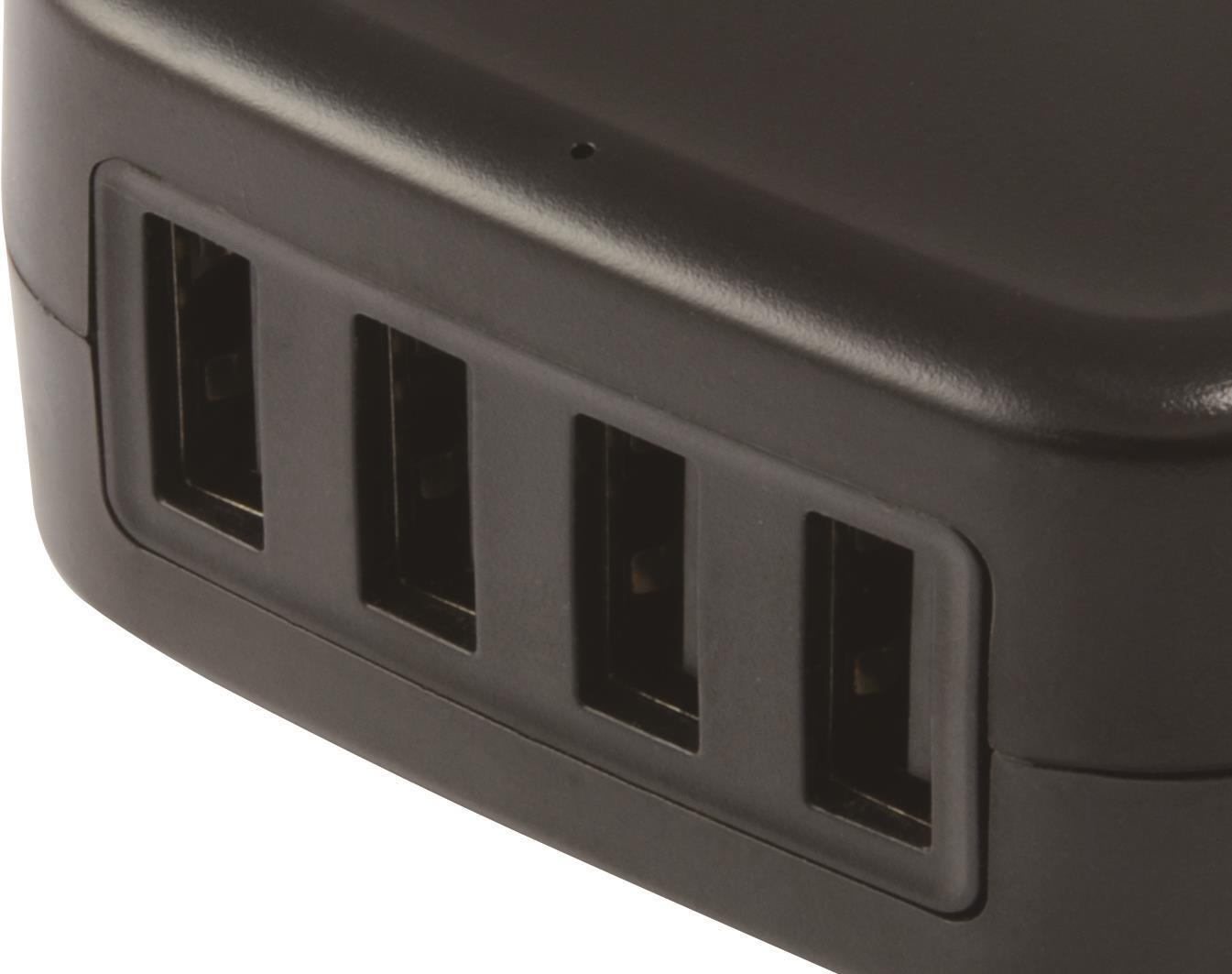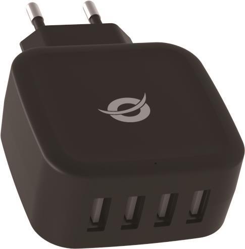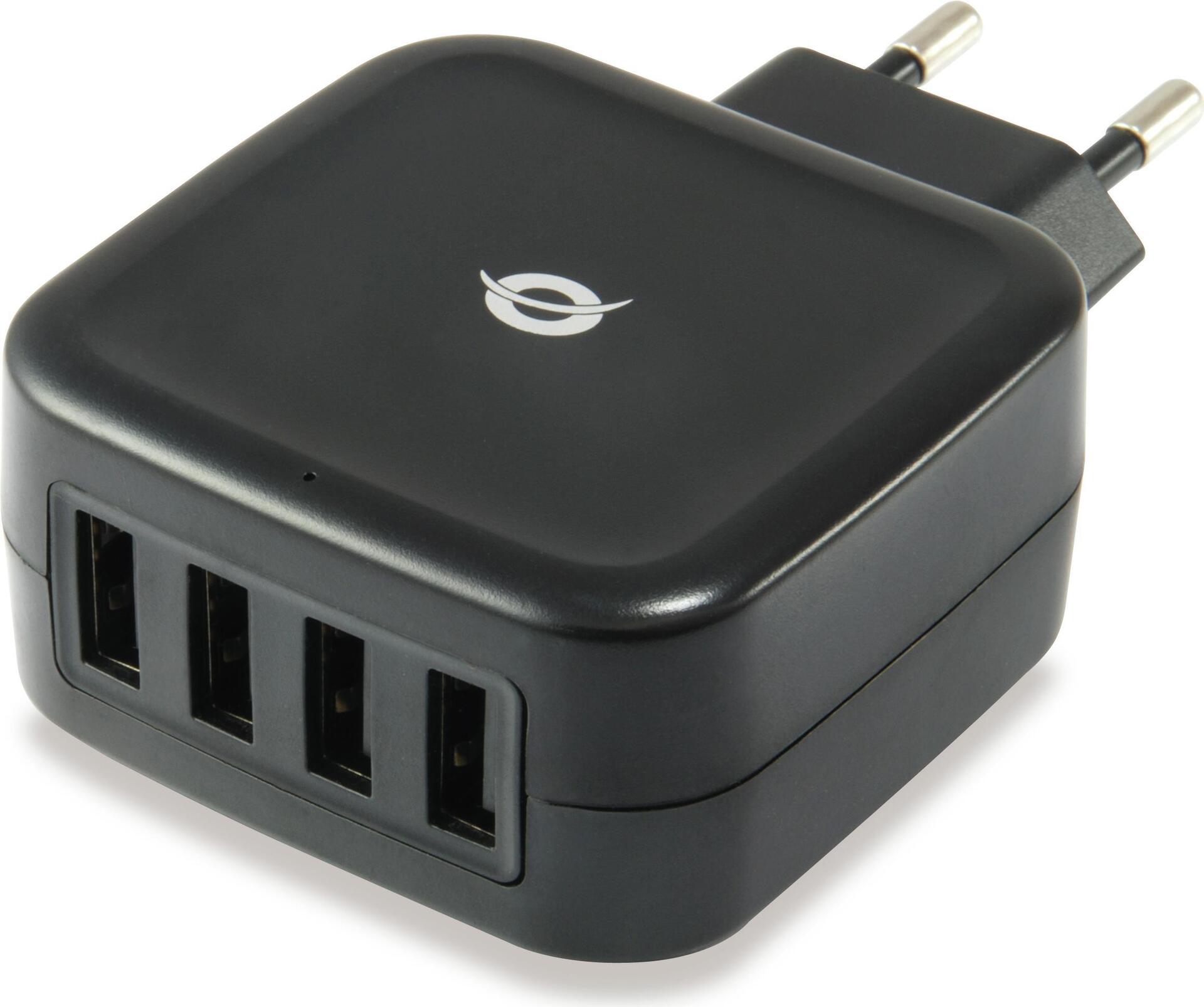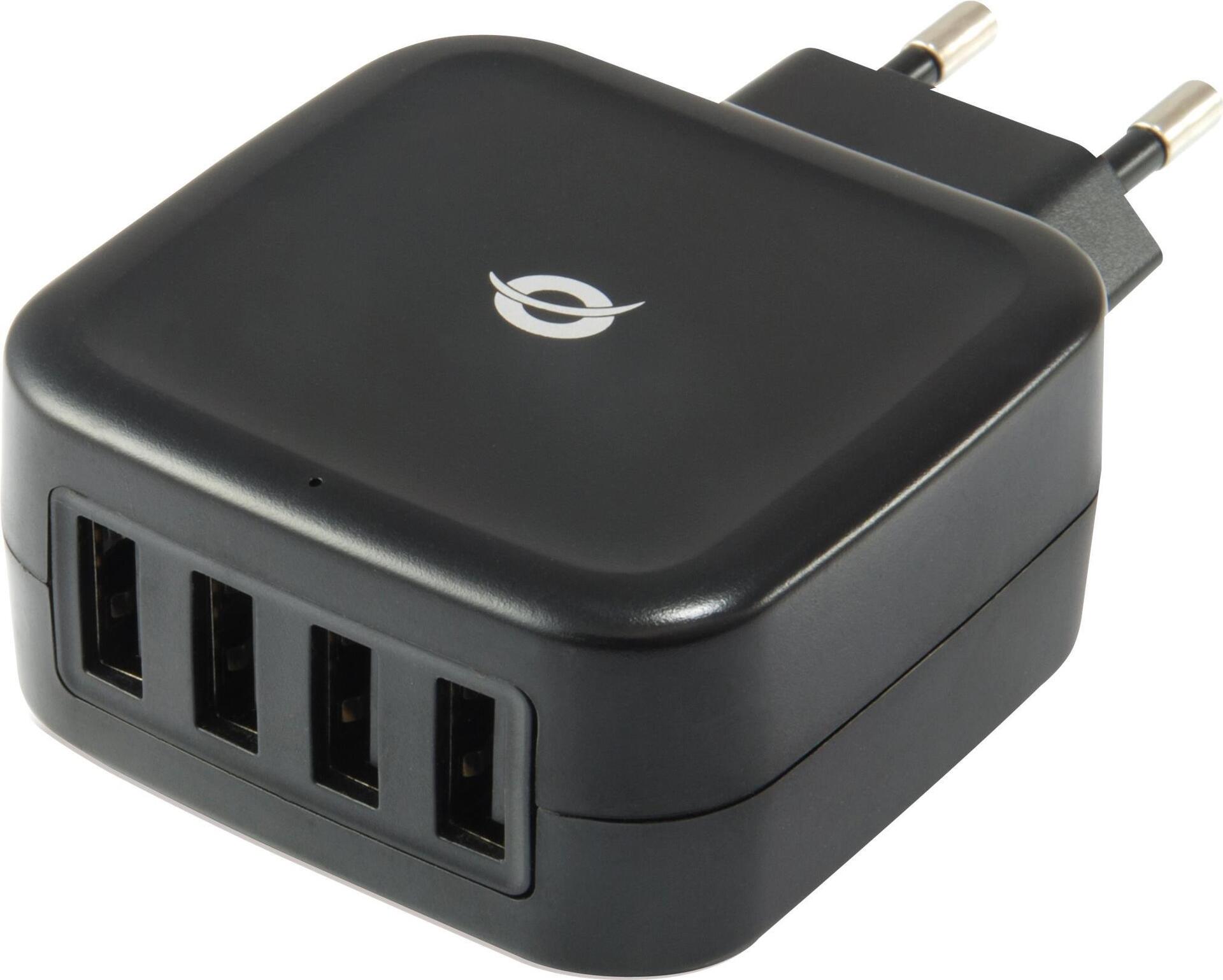 Dieses 4-Port-USB-Ladegerät ist die ideale Lösung zum Aufladen eines Tablets sowie der meisten anderen Geräte mit USB-Schnittstelle. Durch direktes Anschließen an eine Steckdose kann das 4-Port-USB-Ladegerät Spannungen von 110 bis 240 Volt Wechselspannung aufnehmen und wandelt diese automatisch in die von USB-Geräten genutzten 5 Volt Gleichspannung um. Neben Smartphones und Tablets unterstützt das Ladegerät viele weitere Geräte, wie Navigationssysteme, MP3-Player und Digitalkameras. Dank der hohen Ausgangsleistung und der 4 USB-Ports kann das vielseitige 4-Port-USB-Ladegerät von Conceptronic vier Geräte gleichzeitig aufladen. Ein absolutes Muss für Heim, Büro oder auf Reisen.