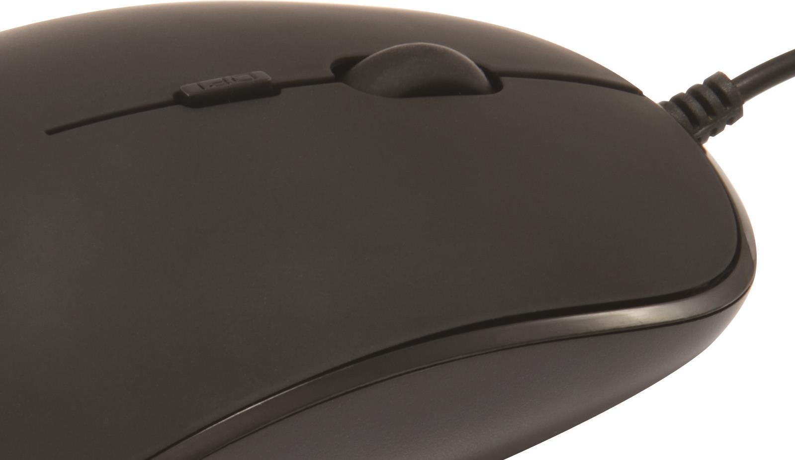 Mit dieser optischen Maus erhalten Sie ein zuverlässiges Werkzeug für Ihren Computer - mit Mausrad zum perfekten und bequemen Bildlauf. Die clever konzipierte Maus verfügt über einen DPI-Schalter zur sofortigen Anpassung der Empfindlichkeit und die gummierte Oberfläche bietet eine ausgezeichnete Griffigkeit und hohen Komfort. Dank des ergonomischen Designs lässt sich die Maus von Rechts- und Linkshändern gleichermaßen bequem und komfortabel nutzen.
