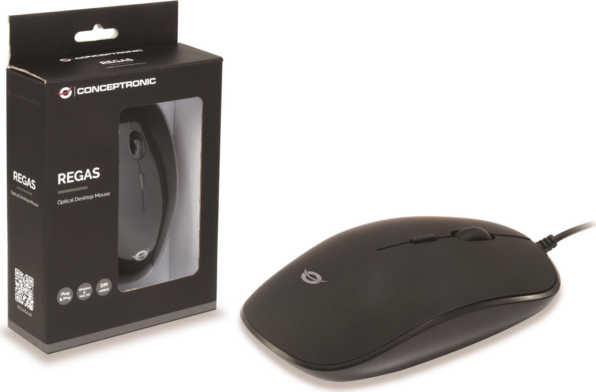 Conceptronic REGAS E4 - Maus - rechts- und linkshändig - optisch - 4 Tasten - kabelgebunden - USB - Schwarz (REGAS01B)
