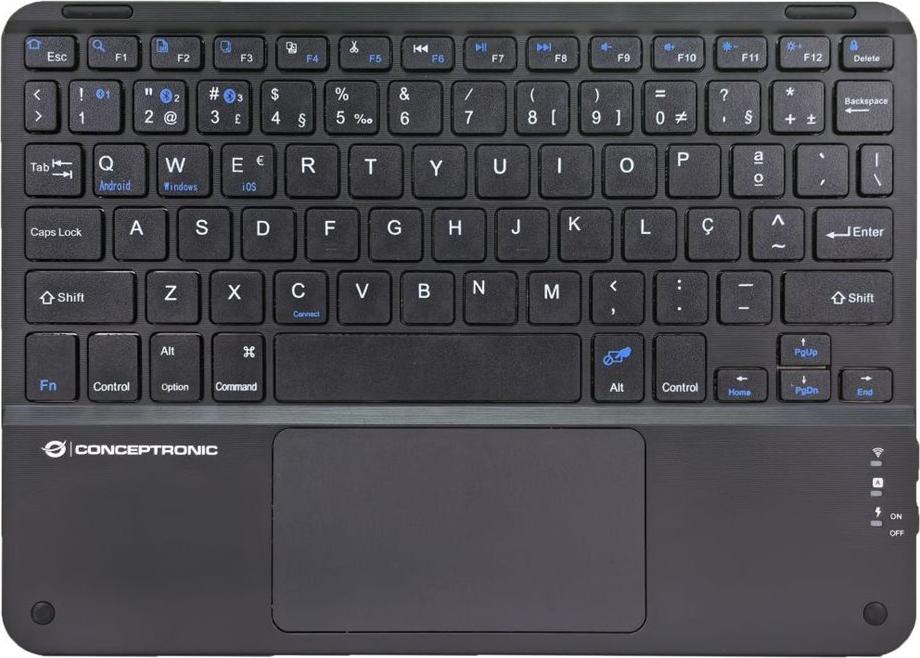 Die Conceptronic TOBIN01BPT-Tastatur vereint dank ihres wiederaufladbaren Akkus und ihrer kabellosen Verbindung Mobilität und Komfort. Die Tastatur ist sowohl mit Android- als auch mit Apple iOS-Geräten kompatibel und verfügt über ein QWERTY-Layout in portugiesischer Sprache, sodass Benutzer auf verschiedenen Plattformen effizient tippen können. Das integrierte Touchpad verbessert die Funktionalität und ermöglicht eine nahtlose Navigation ohne zusätzliche Peripheriegeräte. Mit Bluetooth 5.4-Technologie sorgt diese Tastatur für eine stabile und zuverlässige Verbindung und gibt Benutzern die Freiheit, sich zu bewegen, ohne an ihre Geräte gebunden zu sein. Mit einem Gewicht von nur 10 Zoll ist sie ideal für das Tippen unterwegs, egal ob bei der Arbeit, beim Lernen oder in der Freizeit. Die Tastatur entspricht den RoHS-Standards und spiegelt damit das Engagement für umweltbewusstes Handeln wider.