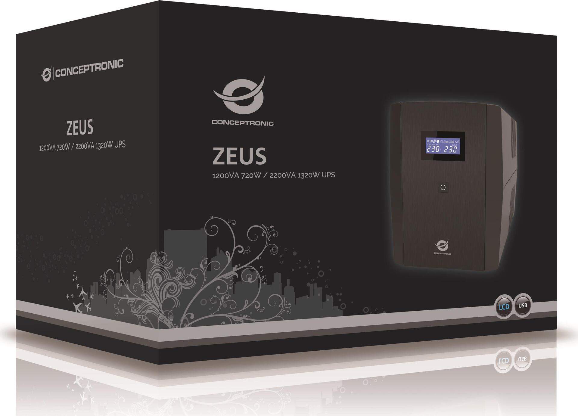 Conceptronic Zeus 04EM - USV - Wechselstrom 220-240 V - 1320 Watt - 2200 VA 9 Ah - USB - Ausgangsanschlüsse: 5 (ZEUS04EM)