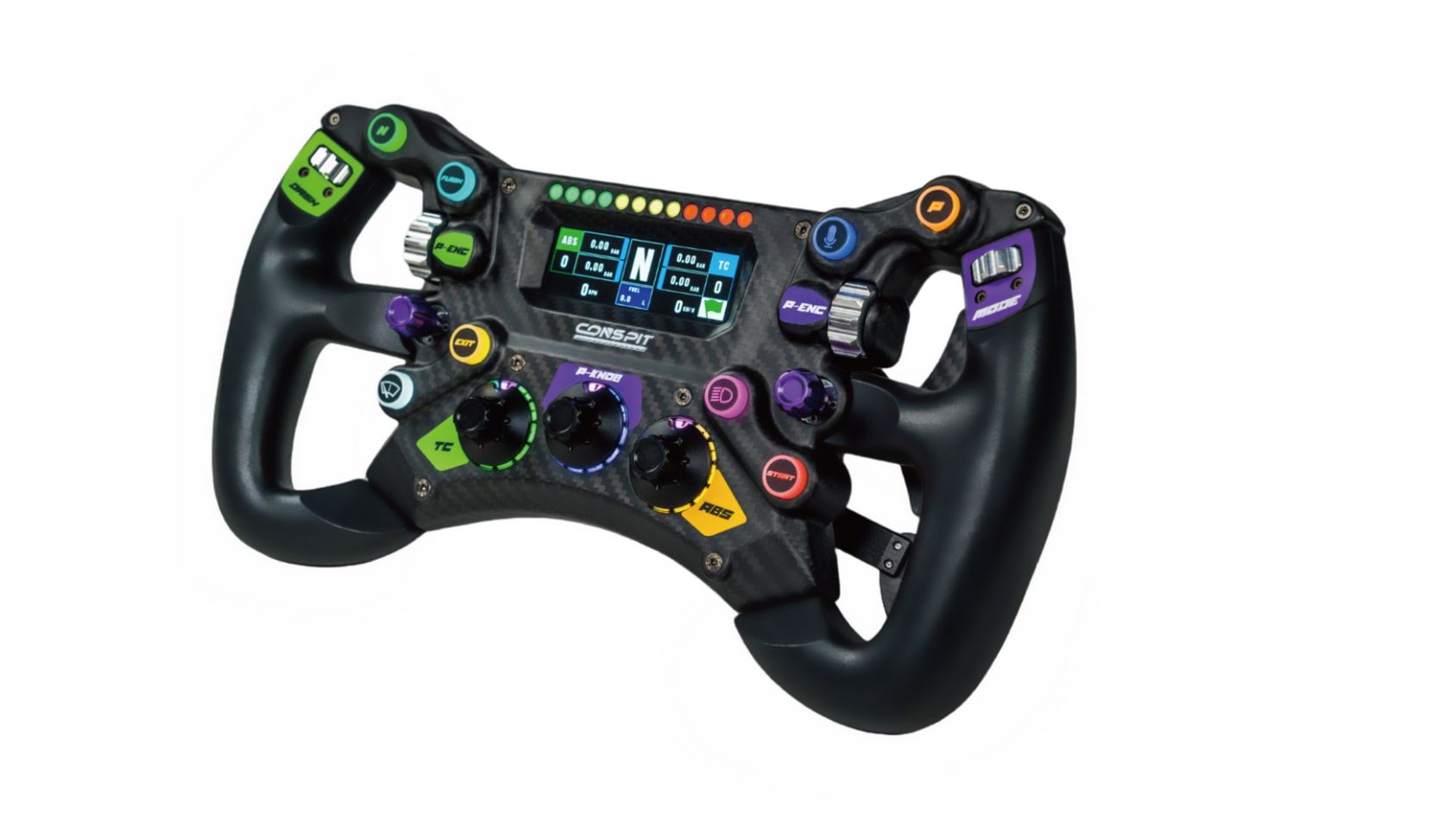 Ultraleichtes Chassis aus Carbon und Aluminium, Bis zu 110 unabhängige Eingabemöglichkeiten, 2,99-Zoll-Racing-Display mit 7 Telemetrie-Seiten, Magnetische Schalt- & Kupplungspaddles, RGB-Buttons und LED-Anzeigen, SimHub-ready