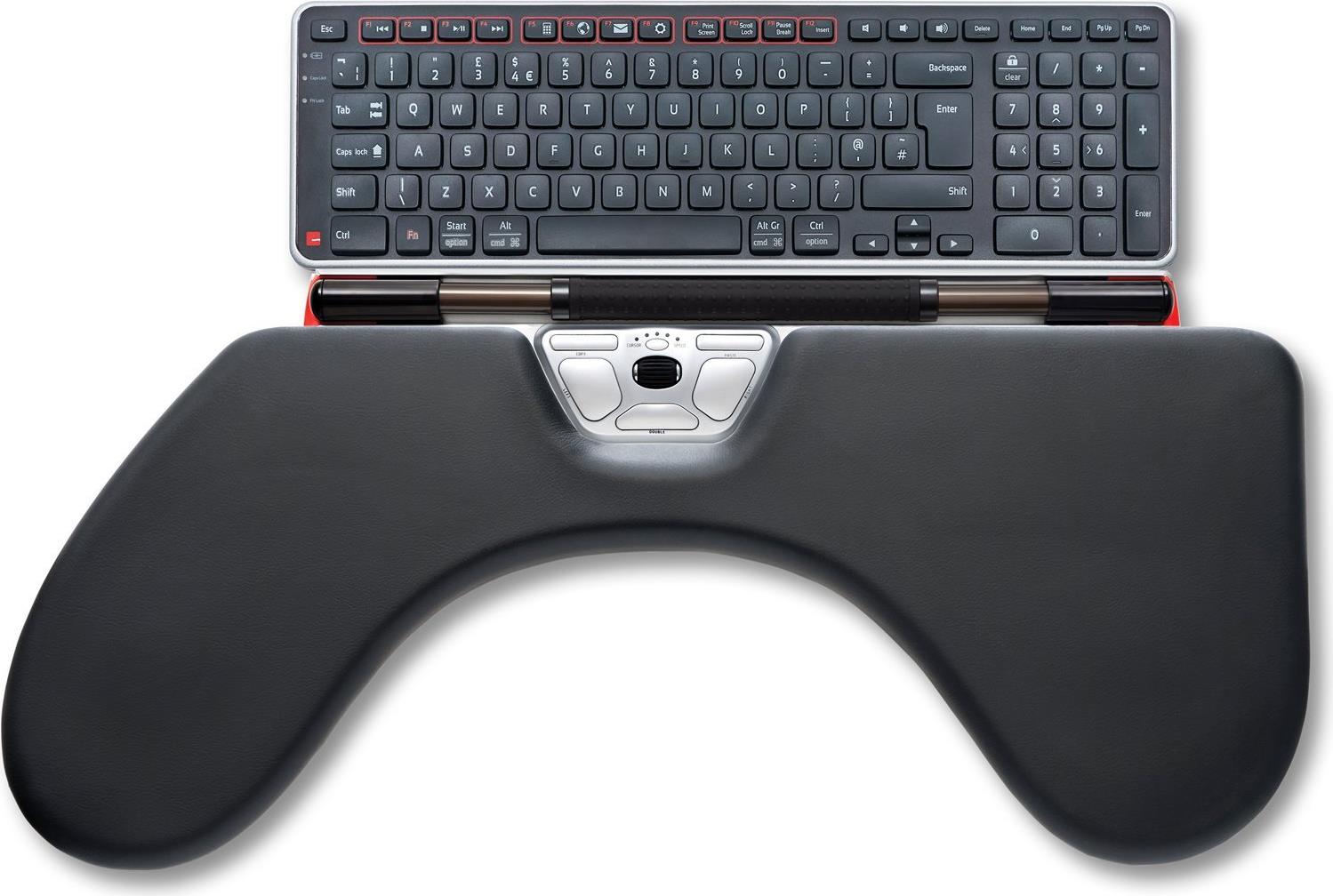 Wer eine Armstütze benötigt, sollte sich für die RollerMouse Red Max entscheiden, die sowohl die Hände als auch die Arme voll unterstützt. Die RollerMouse Red Max ist eine hochwertige, ergonomische, zentrierte Maus aus Aluminium mit einem breiten, gerillten Rollstab und einem Scrollrad für verbesserte Kontrolle. Die RollerMouse Red Max ist für alle Funktionen angepasst, die Sie heute auf einem Computer nutzen können, sowie für alle Bildschirmgrößen. Der Rollstab wird vor dem Körper platziert, so dass die Arbeit mit der Maus mit minimaler Streckung erfolgt, und die zentrierte Arbeitsposition schützt den ganzen Tag über vor Rücken-, Nacken- und Schulterschmerzen. Die integrierten Tasten zum Kopieren und Einfügen erleichtern das schnelle Übertragen von Text oder Bildern zwischen Programmen, oder stellen Sie die programmierbaren Tasten auf Ihre bevorzugten Tastenkombinationen ein.Hauptmerkmale