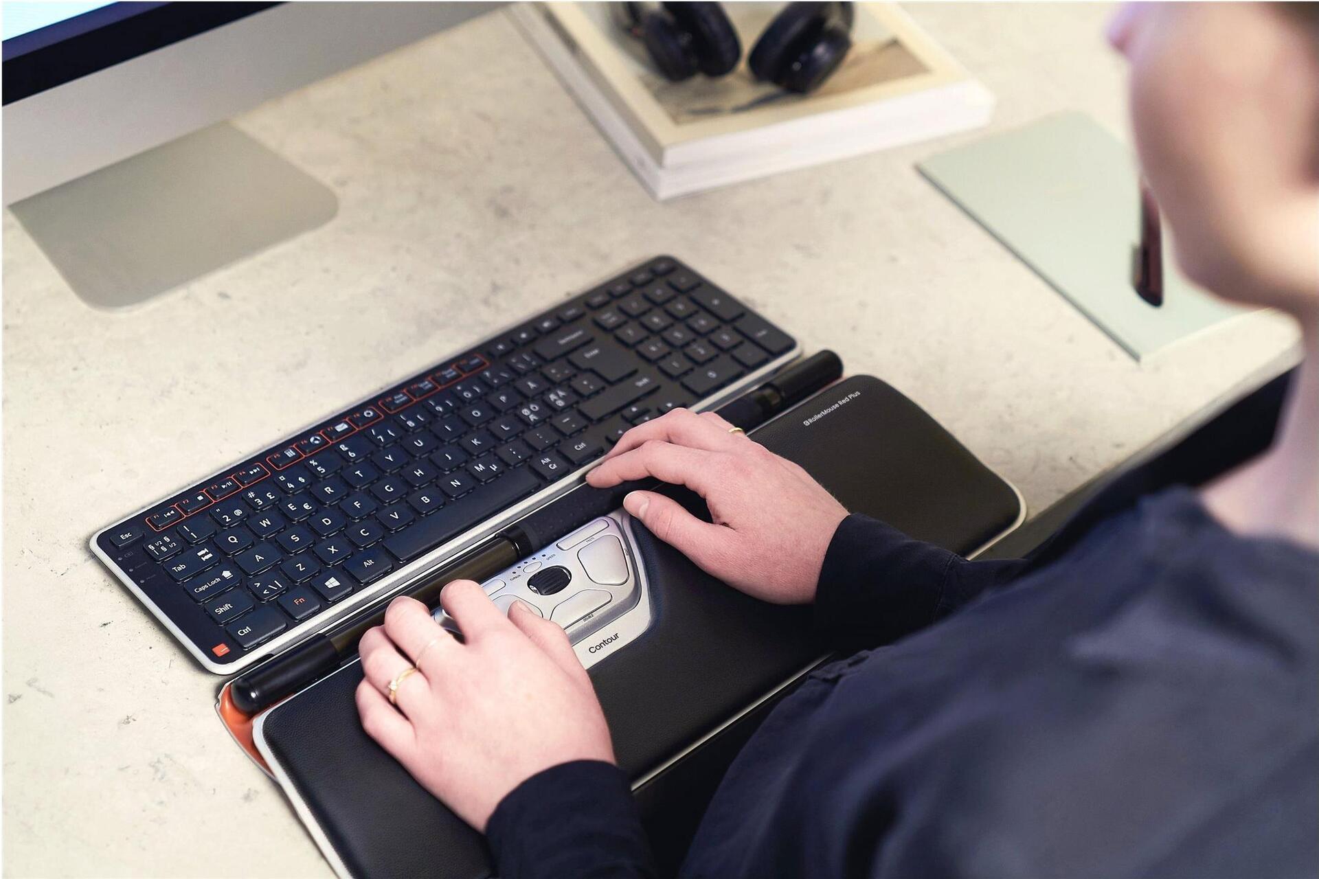Die Contour RollerMouse Red Plus bietet Komfort und Unterstützung für Benutzer, die eine ergonomische Alternative zu Standardmäusen suchen. Das durchdachte Design mit Handgelenkstütze sorgt dafür, dass Ihr Handgelenk und Ihre Hand eine neutrale Position beibehalten, was die Belastung bei längerem Gebrauch reduziert. Ihre Funktionalität wird durch eine reibungslose Abtastung ergänzt, die eine präzise Steuerung ermöglicht, während Sie mühelos durch Aufgaben navigieren.