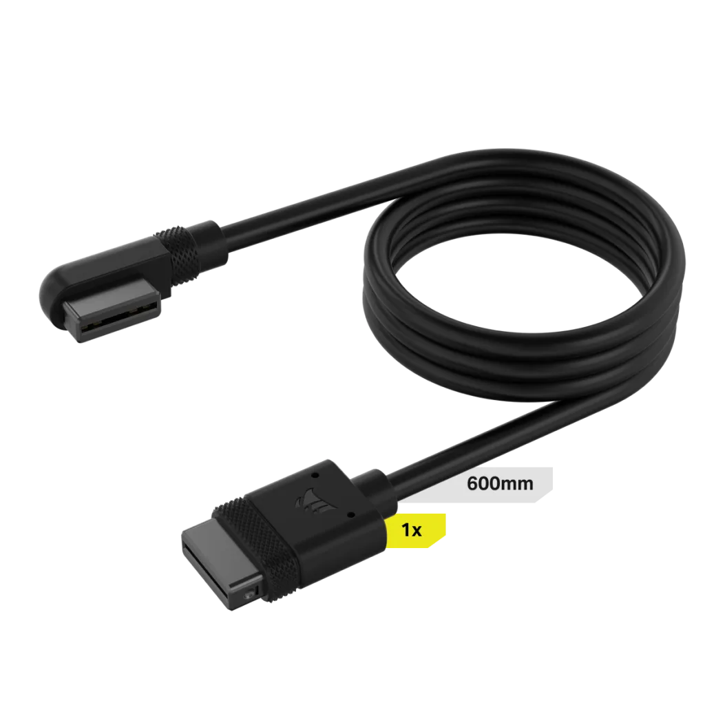 Dieses Kabel sorgt dafür, dass Sie Ihre iCUE LINK-Geräte immer anschließen können. Der schlanke, um 90 Grad abgewinkelte Stecker sorgt für festen Sitz.