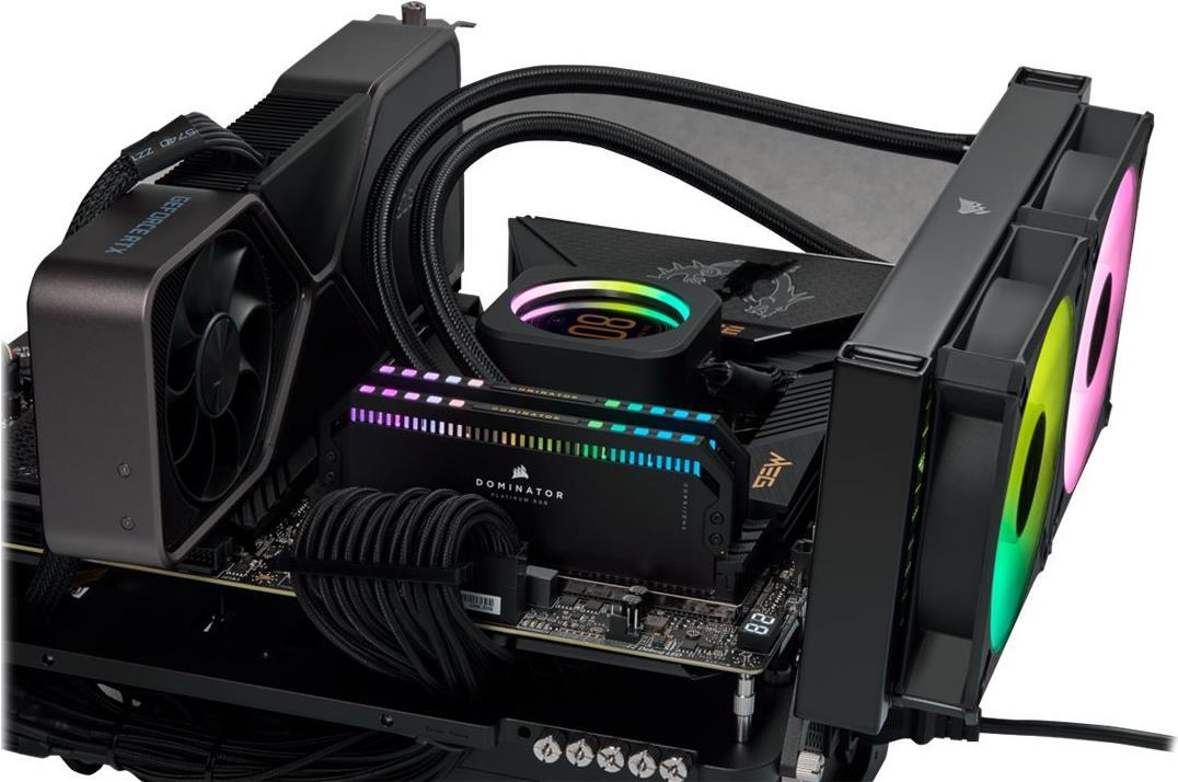 | Besonderheiten | Dual-path Heat Xchange (DHX), anodized aluminum heatspreader, dynamische Multi-Zone RGB-Beleuchtung, Corsair iCUE Support, 12 strahlend helle, einzeln ansteuerbare CAPELLIX-RGB-LEDs, Intel Extreme Memory Profiles (XMP 3.0), leistungsstarke PCB, voltage regulation support, built-in extreme overclocking Power Management IC (PMIC), ungepuffert |