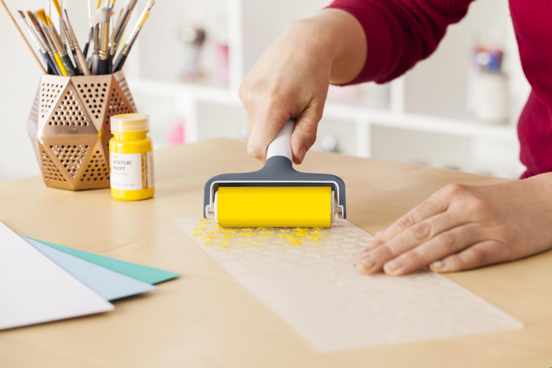 Verlängere die Lebensdauer deiner Cricut FabricGrip-Schneidematte mit diesem 2-in-1-Werkzeug-Set, das zum makellosen Auftragen und Entfernen von Stoff entwickelt wurde. Entfernt jede Falte, Blase oder Delle mit dem elegant designten Cricut-Handroller. Dieser sorgt für einen sicheren Halt des Materials auf der Schneidematte und eignet sich ideal, um Stoffe, Vinyl oder Bügelfolien anzupressen und Tinte auf Stempel aufzutragen. Die Stahlpinzette mit breiter Spitze macht das Anheben von feinen Fäden und Materialüberschuss von der Matte leicht, ohne die Klebeseite zu berühren.