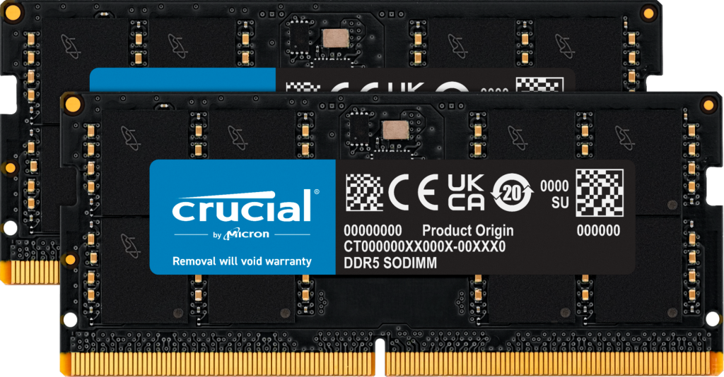 • Crucial CT2K32G48C40S5 Speichermodul 64 GB (2x 32 GB) DDR5-4800 MHz SO-DIMM Laptop (CT2K32G48C40S5) (geöffnet)