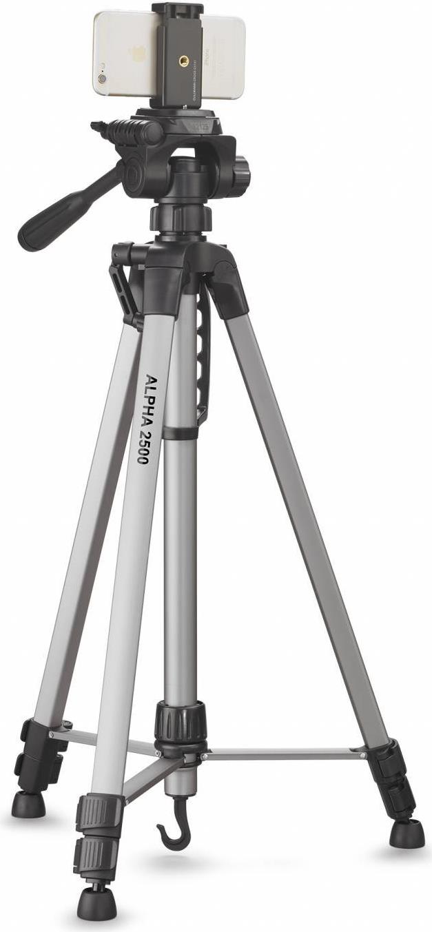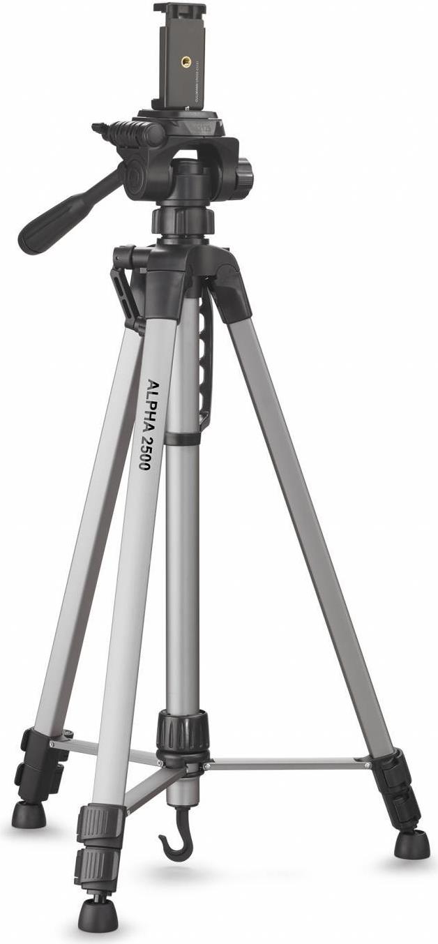 Das Universalstativ Alpha 2500 überzeugt durch eloxiertes Aluminiumrohr für Stativbeine und Kurbelsäule, durch eine zuverlässige Stativbeinklemmung und durch einen kompakten 3-Weg-Panoramakopf mit Schnellkupplungssystem.