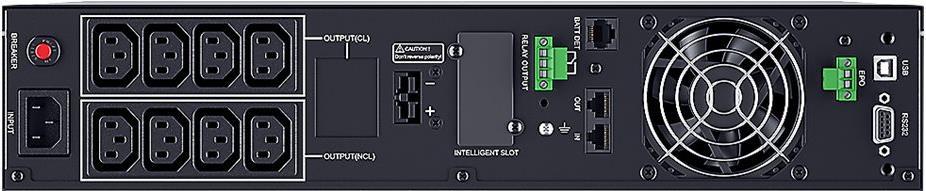Die USV verfügt über eine Farb-LCD-Anzeige, über die der Benutzer das Stromversorgungssystem überwachen und Einstellungen einfach konfigurieren kann. Daneben steht für Sonderanwendungen eine Relais-Trockenkontaktschnittstelle zur Verfügung. Diese Modelle haben eine automatische Erkennung von extern angeschlossenen Batteriemodulen um automatisch die Anzahl der angeschlossenen Batteriemodule (EBM) zu erkennen und so eine korrekte Laufzeit der USV anzuzeigen. Die drehzahlvariable Lüftersteuerung bietet durch das automatische Wärmemanagement auf der Grundlage der Belastung eine reduzierte Geräuschentwicklung.
